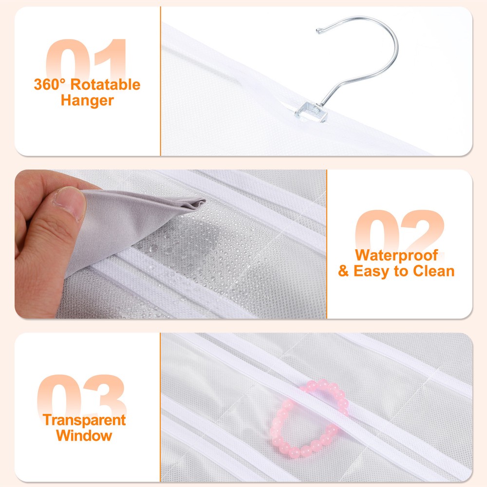 Document Hanging Jewelry Organizers and Storage:The overall size of the jewelry storage bag is 43 x 78 cm / 16.92 x 30.7 inches, with a total of 80 transparent pockets. It is a double-sided design, with 40 small pockets on one side for bracelets, earrings and rings.Easy to Use: Save space, can be hung on the wall, wardrobe, behind the door. Store all jewelry in the same place, so you can pick it up at will.It takes up as little space as a shirt hanging in the closet, saving a lot of space than a jewelry box or jewelry stand.It can be folded or rolled up, making it convenient to carry jewelry on business trips or vacation trips.Protect Jewelry: The compartment design allows for separate storage to reduce dust ingress, protects your jewelry from entanglement, effectively avoids scratches, and prevents oxidation and rust from occurring.In addition, it can also display your beautiful jewelry.Hang Anywhere: With a double-sided design, the jewelry hanger can rotate 360 degrees to any direction you need.Made of durable polyester, PVC materials and sturdy metal hooks, it is sturdy and durable, not easy to break or fade, and can be used for a long time.Multifunctional Jewelry Organizer: It can store and display a large amount of jewelry, and the transparent pocket allows you to easily find jewelry.The wardrobe jewelry hanging storage box has a variety of uses, not only for storing jewelry, but also for nail polish, cosmetics, cards, etc. Dual-sided Hanging Jewelry Organizer with 80 Pockets White Hanging Jewelry Organizers and Storage: The overall size of the jewelry storage bag is 43 x 78 cm / 16.92 x 30.7 inches, with a total of 80 transparent pockets. It is a double-sided design, with 40 small pockets on one side for bracelets, earrings and rings. Easy to Use: Save space, can be hung on the wall, wardrobe, behind the door. Store all jewelry in the same place, so you can pick it up at will. It takes up as little space as a shirt hanging in the closet, saving a lot of space than a jewelry box or jewelry stand. It can be folded or rolled up, making it convenient to carry jewelry on business trips or vacation trips. Protect Jewelry: The compartment design allows for separate storage to reduce dust ingress, protects your jewelry from entanglement, effectively avoids scratches, and prevents oxidation and rust from occurring. In addition, it can also display your beautiful jewelry. Hang Anywhere: With a double-sided design, the jewelry hanger can rotate 360 degrees to any direction you need. Made of durable polyester, PVC materials and sturdy metal hooks, it is sturdy and durable, not easy to break or fade, and can be used for a long time. Multifunctional Jewelry Organizer: It can store and display a large amount of jewelry, and the transparent pocket allows you to easily find jewelry. The wardrobe jewelry hanging storage box has a variety of uses, not only for storing jewelry, but also for nail polish, cosmetics, cards, etc. Hot Item Payment 1.We accept eBay payment . 2.Payment must be received within 7 business days of auction closing. Shipping 1.We ship to your eBay or Paypal address. Please make sure your eBay and Paypal address is correct before you pay. 2.Items will be shipped within 1-3 business day when we received payment. 3.Delivery time depends on destination and other factors. Description Policy Dual-sided Hanging Jewelry Organizer with 80 Pockets White Hanging Jewelry Organizers and Storage: The overall size of the jewelry storage bag is 43 x 78 cm / 16.92 x 30.7 inches, with a total of 80 transparent pockets. It is a double-sided design, with 40 small pockets on one side for bracelets, earrings and rings. Easy to Use: Save space, can be hung on the wall, wardrobe, behind the door. Store all jewelry in the same place, so you can pick it up at will. It takes up as little space as a shirt hanging in the closet, saving a lot of space than a jewelry box or jewelry stand. It can be folded or rolled up, making it convenient to carry jewelry on business trips or vacation trips. Protect Jewelry: The compartment design allows for separate storage to reduce dust ingress, protects your jewelry from entanglement, effectively avoids scratches, and prevents oxidation and rust from occurring. In addition, it can also display your beautiful jewelry. Hang Anywhere: With a double-sided design, the jewelry hanger can rotate 360 degrees to any direction you need. Made of durable polyester, PVC materials and sturdy metal hooks, it is sturdy and durable, not easy to break or fade, and can be used for a long time. Multifunctional Jewelry Organizer: It can store and display a large amount of jewelry, and the transparent pocket allows you to easily find jewelry. The wardrobe jewelry hanging storage box has a variety of uses, not only for storing jewelry, but also for nail polish, cosmetics, cards, etc. Hot Item Payment 1.We accept eBay payment . 2.Payment must be received within 7 business days of auction closing. Shipping 1.We ship to your eBay or Paypal address. Please make sure your eBay and Paypal address is correct before you pay. 2.Items will be shipped within 1-3 business day when we received payment. 3.Delivery time depends on destination and other factors.