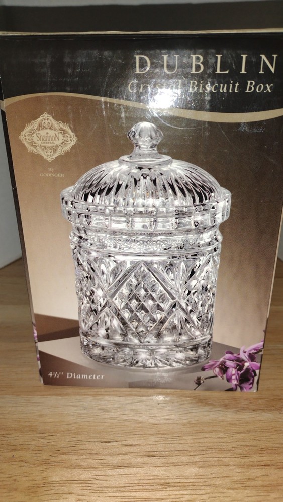 Candy dish Dublin Crystal Biscuit jar. Brand new never used any questions or concerns please ask or if you would like some more photos please ask us it's no bother.
