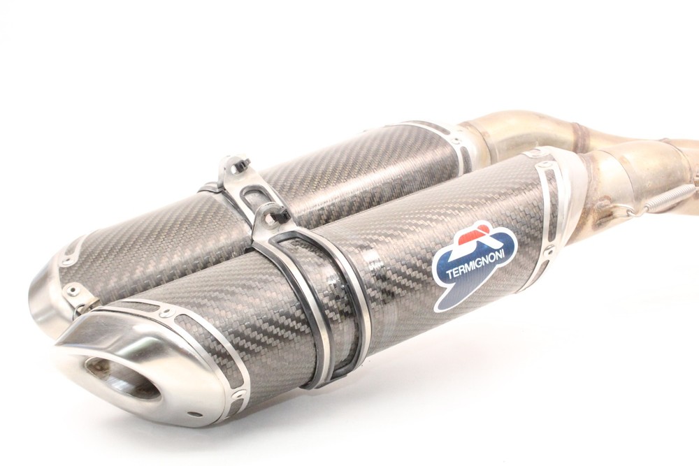 eBay Listing VISIT STORE ABOUT CONTACT REVIEWS Pulled from a 2012 Ducati 848 1098 1198 EVO VIN#: ZDM1XBMV4CB020525 11-13 Ducati 848 TERMIGNONI Header Exhaust Muffler Slip on Full System Header has one small dent and mid pipe also has a small dent as shown in photos. Please Read The model generation year range in the title and listing indicates possible compatibility but does not guarantee fitment for all parts. While some parts from this motorcycle may fit the listed models/years, certain components can be specific to particular years. To ensure compatibility, please contact us via eBay message or consult your local dealership before making a purchase. We recommend researching fitment to verify that this part matches your year, make, and model. Please thoroughly review all pictures to assess the item's condition. Hardware is not included unless depicted in the listing photos. Props and tools shown in the photos are for display purposes only and are not included. Shipping and Payment Terms Before purchase: Please check your address carefully, make sure your shipping information is correct. We ship using UPS Ground, FedEx and USPS. Delivery is typically 1-5 business days. Returns Our goal is to ensure your complete satisfaction. We offer a 30-day return & exchange policy. Terms of Sale We will keep in touch with you during the transaction, and promise to stand by the item. If you don’t receive the item or are not satisfied, please contact us via eBay message — we’ll respond within 24 hours. Powered by MotoLister The most powerful listing tool for ebay motors.
