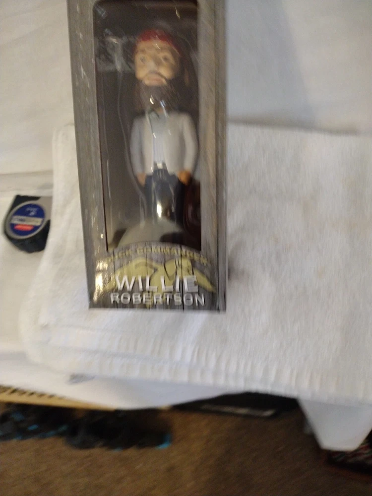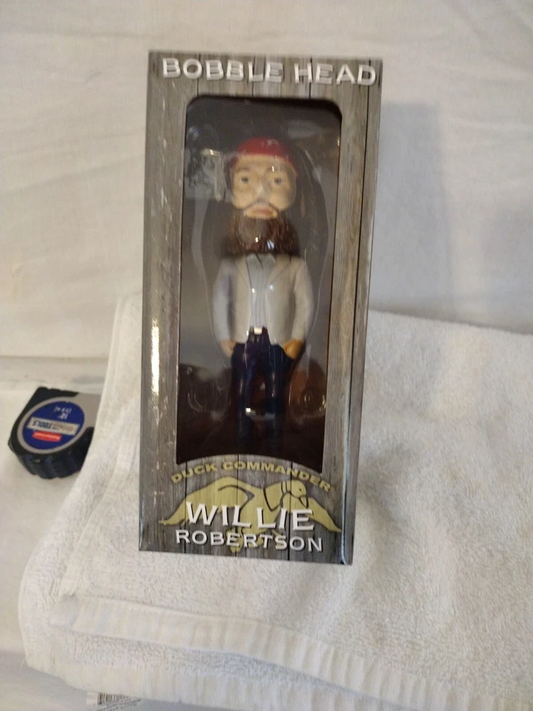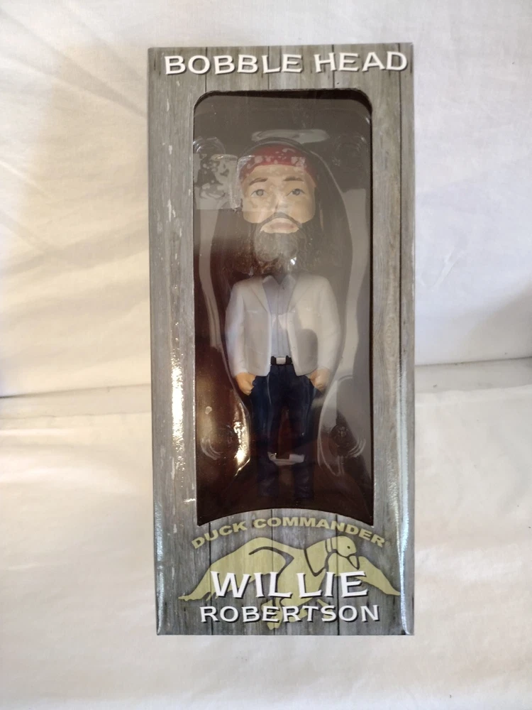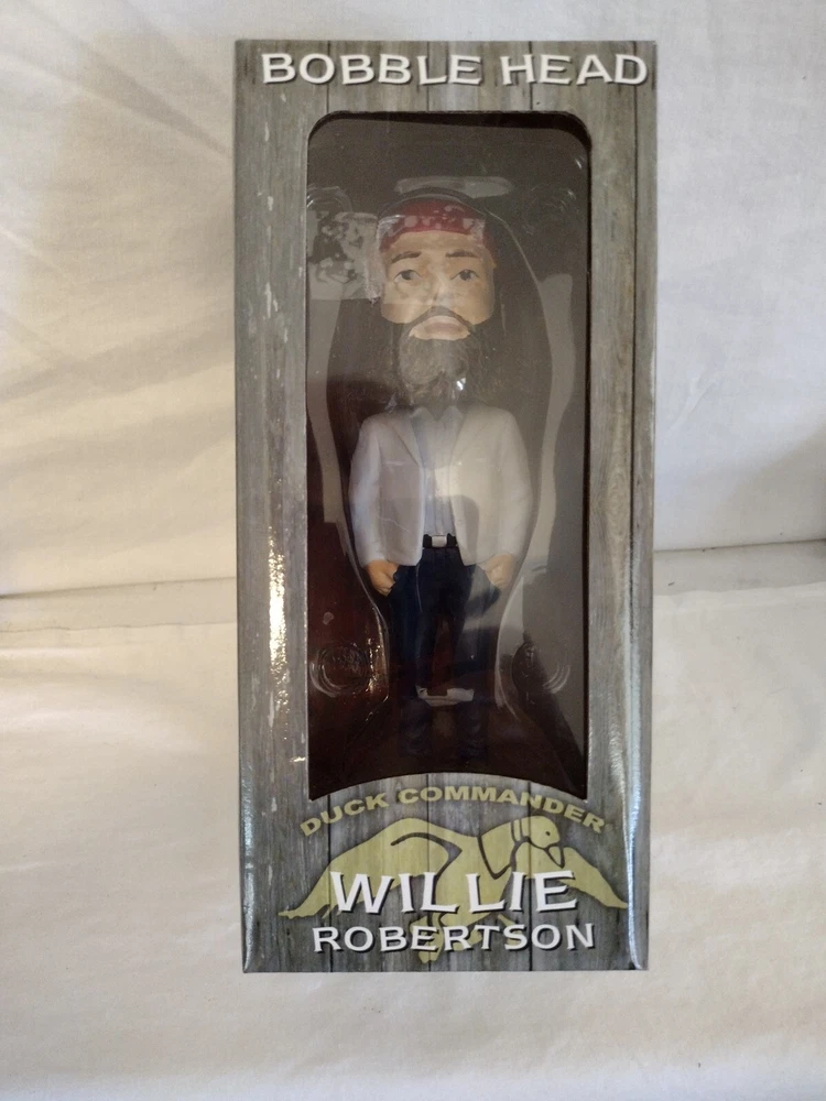 This Duck Commander Willie Robertson Bobble Head in Box is a must-have for any fan of the popular TV show Duck Dynasty. The multicolor resin figurine stands at 6.5 inches tall and features the iconic character Willie Robertson. The item is suitable for ages 3 and up and is part of the Fierce Products franchise. This collectible bobblehead is made in China and is perfect for display or as a gift. The Duck Commander brand is known for its high-quality products, and this item is no exception. Celebrate the fame of Willie Robertson with this unique and charming bobblehead.