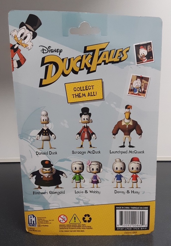 The product is a Disney DuckTales Launchpad McQuack Pilot Action Figure by Phat Mojo, featuring the character Launchpad McQuack from the DuckTales franchise. This original action figure is made of plastic and is recommended for ages 3 and up. It is part of the DuckTales series and is designed to resemble the character as seen in the TV show, making it a great collectible for fans of the Disney cartoon. The figure showcases Launchpad McQuack in his pilot attire, adding to its appeal for fans of the character and the show.