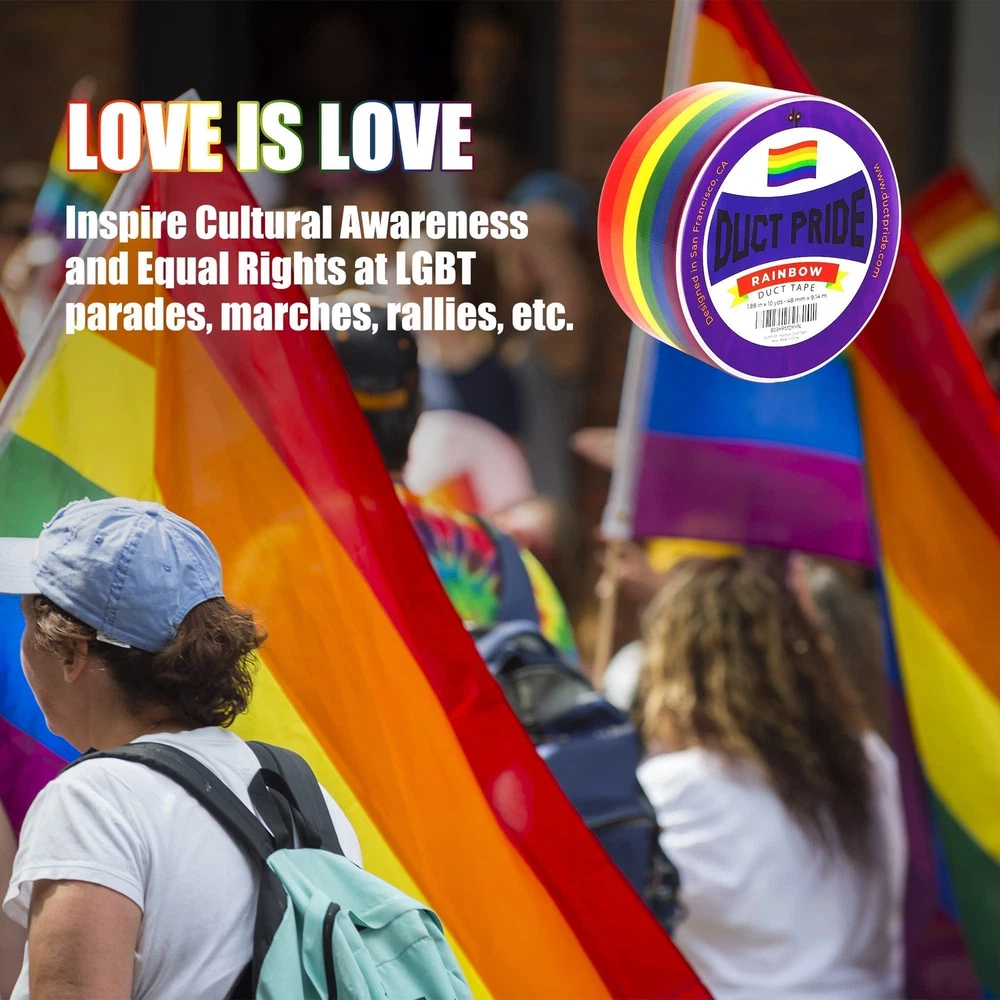 Repair, Decorate, Craft, Label, Support... INSPIRE!🌈Duct Pride - Rainbow Duct Tape is everyone's favorite go to product for that quick easy fix, do it yourself project for nearly anything and everything! It is a fun, useful, versatile and creative tool to have around the home, office, classroom, art studio and place of business. A high-quality product that provides extraordinary value making it the perfect gift for anyone looking for a friendly and convenient solution to everyday simple repairs around the home. The perfect accessory for the young aspiring artist to add to their existing art supply collection to complement and add a creative unique color design for that DIY craft or art project.😷Come together and unite while effectively staying apart - Bright vivid colors of the Rainbow pattern/design tape make this a perfect way to brighten up any room and can be used as social distance floor markings and line formations in a fun and exciting way.🏳🌈Perfect for that special event and venue to support and display Pride in certain social awareness campaigns symbolized by the Pride Rainbow and the LGBTQ Equality Movement. Duct Pride - Rainbow (Duct Tape) will provide a memorable experience and lasting impression everyone will LOVE! Great for a Multitude of Projects – Multi-Purpose Patterned and Colored Duct Tape for general repairs, decorative accents, art projects and trendy DIY crafts. Label and decal your laptop, folder, backpack, skateboard, water bottles, happy birthday party invites or to mark social-distancing spots. Pride Rainbow Flag - Promote: Diversity, Equity and Inclusiveness while supporting: Gay Pride, Equality, Social Change and Justice for the LGBTQ. Use at social events for unique bold lasting impressions and statements of activism to inspire Cultural Awareness and Equal Rights at parades, marches, rallies, social gatherings and media events. Durable and Professional Strength - (9 mil thick) High Performance Adhesive both Waterproof and Weatherproof. Great tape for packing, wrapping, shipping, sealing or masking. Can be used both indoor or outdoor in all types of hot and cold climate conditions. Sticks to all types of walls, surfaces, structures and objects including wood, glass, plastic, metal, cement and concrete. Easy to Tear - No tools or scissors needed! The 70-mesh microfiber cloth duct tape allows it to be torn cleanly, quickly and efficiently by hand even for kids, while maintaining its quality, strength, shape and tapestry with a neat and even edge. 100% Money-Back Guarantee - Duct Pride Rainbow (Duct Tape) is backed by a 100% money back guarantee! If you are not fully happy or satisfied with our product, we will fully refund your purchase no questions asked.