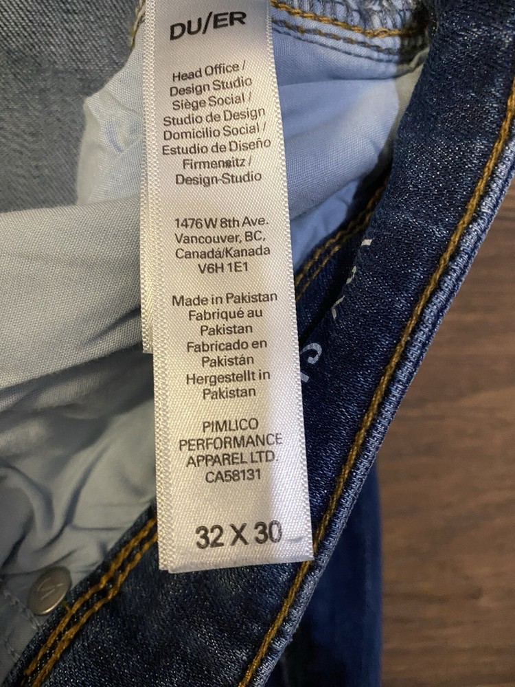 Du/er Duer Medium Wash L2X Slim Straight Leg Jeans 32x30 Men