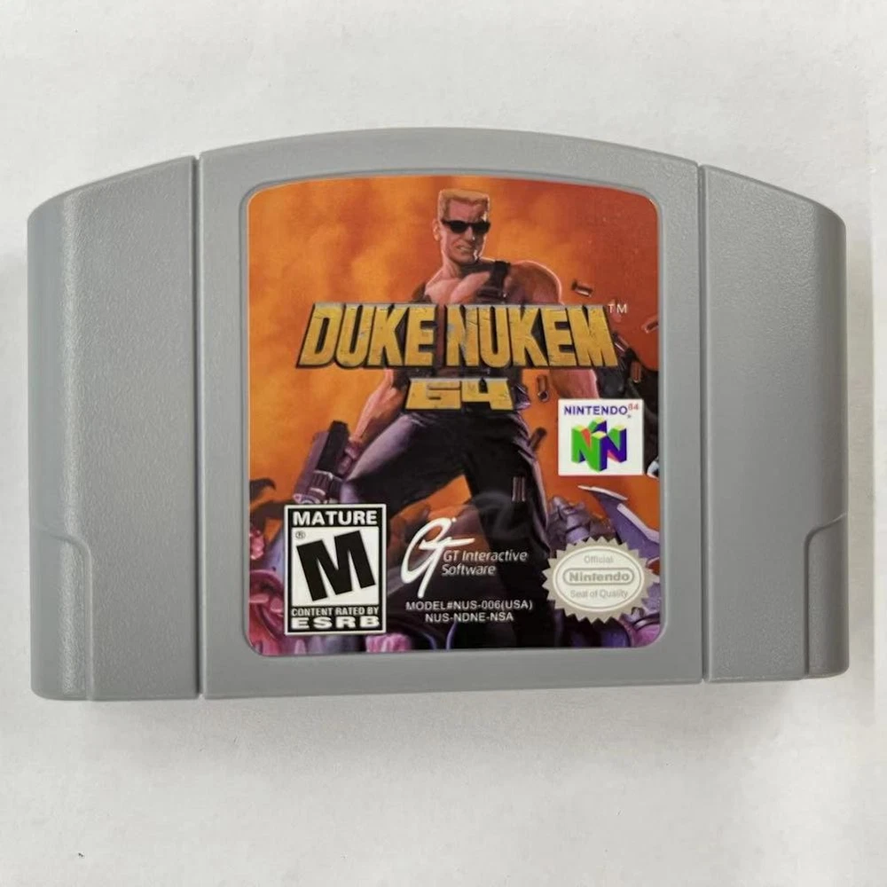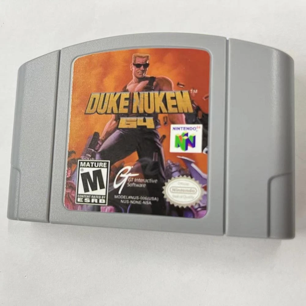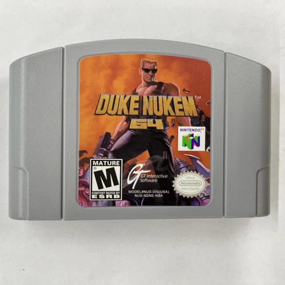 Duke Nukem 64 - Nintendo 64 (N64) Best price Factory sealed Timeless classic Title: Duke Nukem 64 for Nintendo 64 - NTSC-U/C Description: Step into the shoes of the legendary action hero with Duke Nukem 64 for the Nintendo 64! This classic first-person shooter brings all the explosive action, humor, and over-the-top antics that Duke Nukem is famous for. Battle against alien invaders, save the world, and deliver iconic one-liners as you navigate through intense levels filled with enemies, weapons, and secrets. Duke Nukem 64 is a must-have for fans of retro gaming and those looking to relive the glory days of the Nintendo 64. This NTSC-U/C version is compatible with North American consoles and promises hours of nostalgic fun. Grab your copy now and join Duke in his quest to kick alien butt and chew bubblegum... and he's all out of gum!