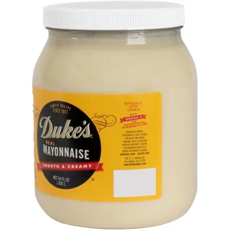 ### Duke's Real Mayonnaise Indulge in the smooth, creamy texture and unique flavor of Duke's Real Mayonnaise, crafted with Eugenia Duke's original recipe since 1917. Celebrated by chefs and home cooks alike, Duke's offers a rich and tangy experience that elevates any dish. #### Key Features: - **Creamy Texture**: Made with egg yolks (not egg whites) for a luxuriously smooth consistency that enhances every bite. - **Distinctive Tang**: Cider vinegar provides a signature tangy flavor that sets Duke's apart from other mayonnaises. - **No Sugar Added**: Enjoy the pure taste of mayonnaise without any added sugar, making it a favorite for many health-conscious consumers. - **Homemade Taste**: Fans claim Duke's tastes just like homemade mayonnaise—if not better! - **Rich History**: Originating from sandwiches sold to soldiers at Camp Sevier in South Carolina, Duke's has been a beloved staple for over a century. - **Versatile Use**: Perfect for sandwiches, salads, dips, and even as a key ingredient in baking, adding depth to your favorite recipes. - **Diet-Friendly**: Gluten-free, certified kosher, rich in Omega 3-ALA, and compatible with keto and low-carb diets. #### Why Choose Duke's? - **Trusted Legacy**: With over 100 years of tradition, Duke's Mayonnaise is the secret to great food that has stood the test of time. - **Loyal Following**: Join the ranks of loyal fans who have spread the word about Duke's across the United States. Try Duke's Real Mayonnaise today and discover why it has been the secret ingredient to delicious meals for generations!