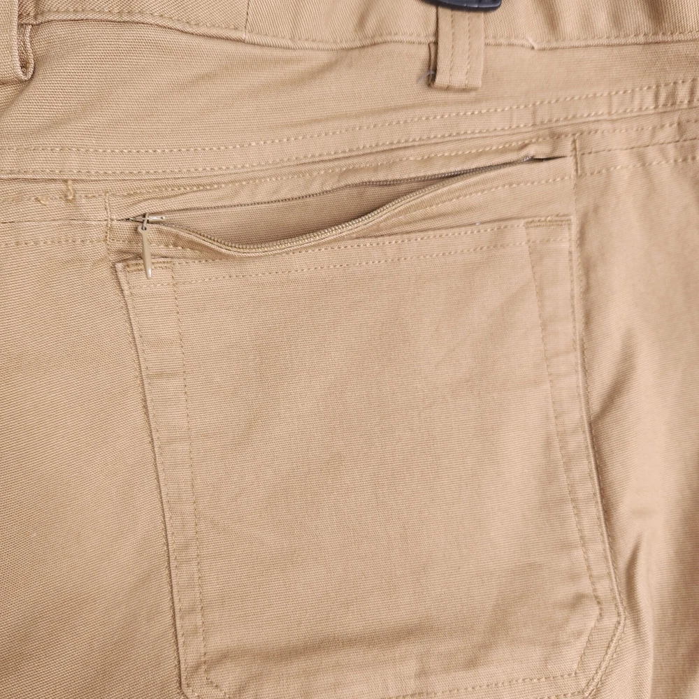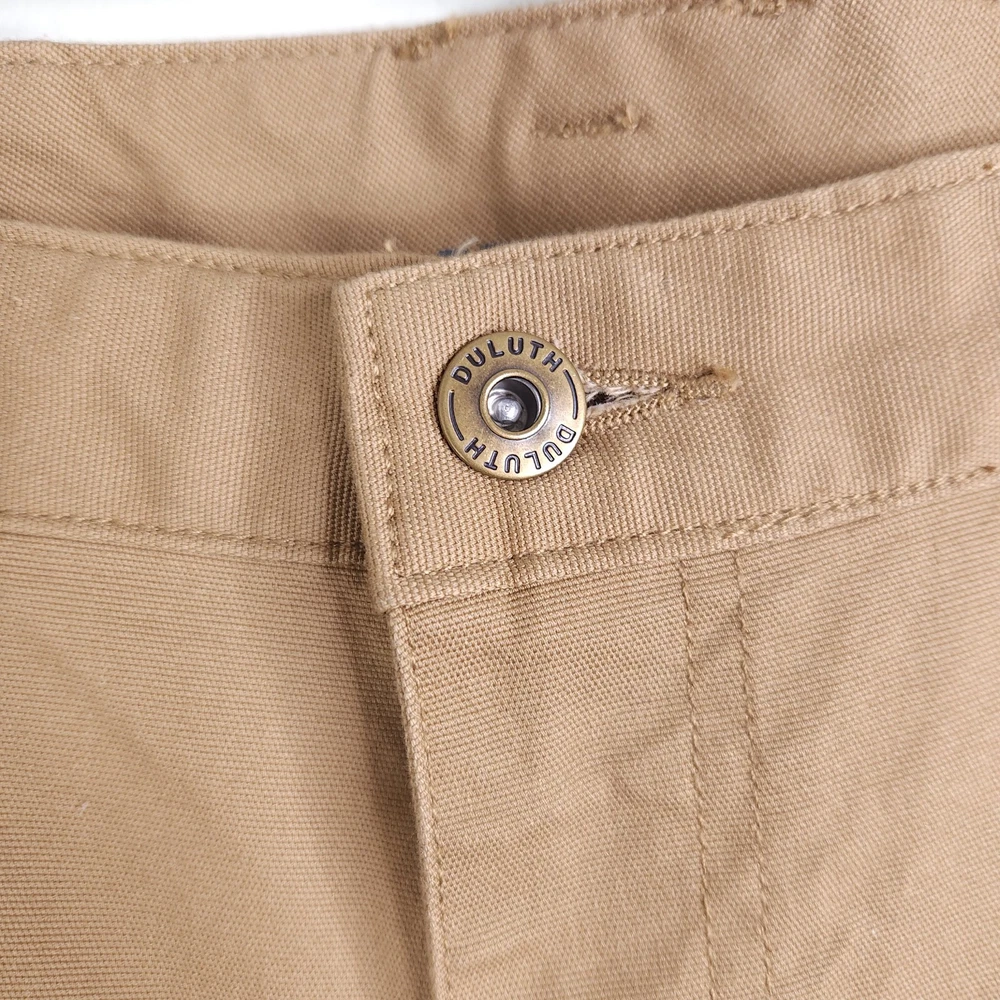 No holes or stains. Excellent used condition. Zipper fly. 8 total pockets, including hidden zip pocket in back. Durable 8oz fire hose material. All measurements are approximate and taken flat across Waistband 23 inches Rise 11 inches Inseam 31 inches
