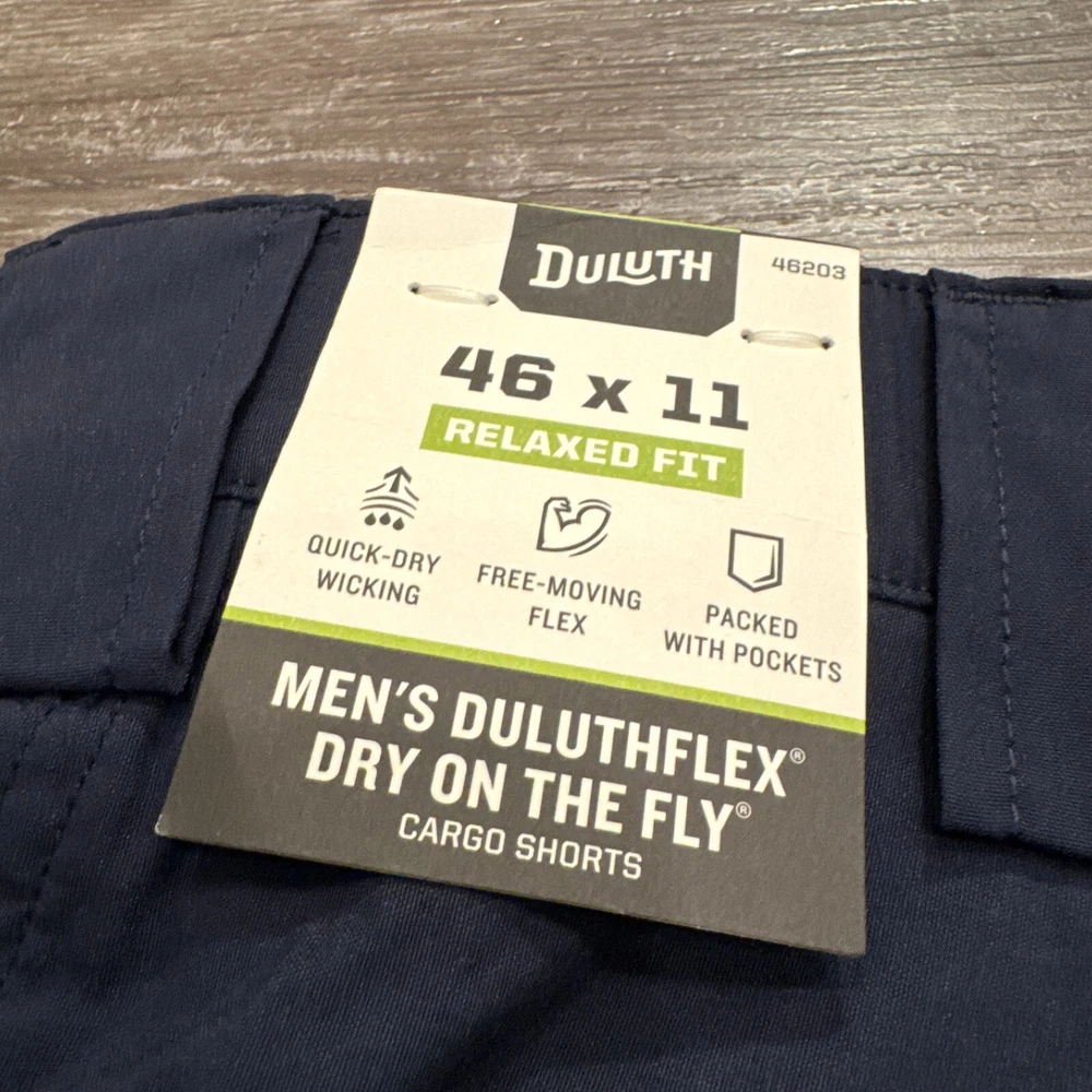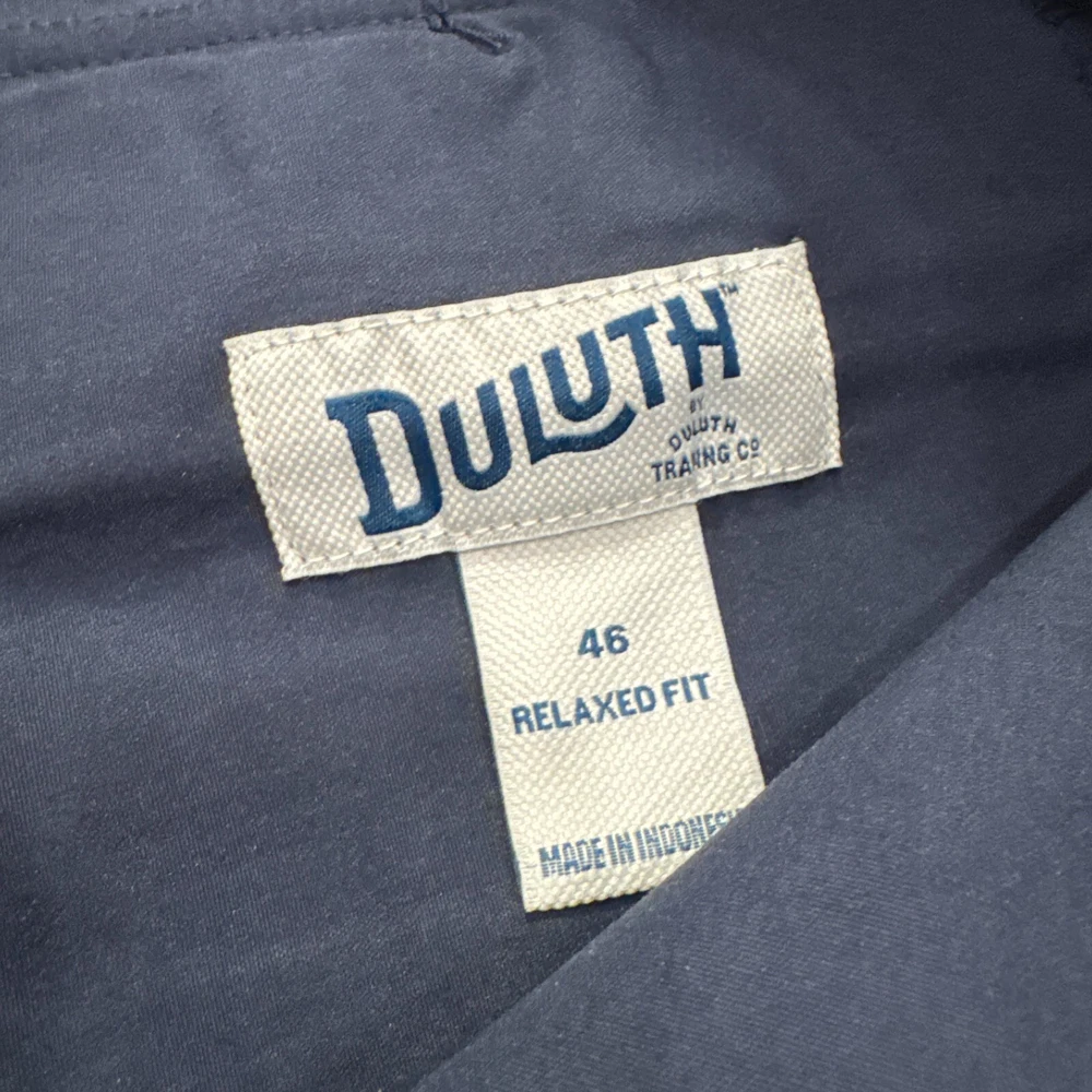 Features: Pockets Handmade: No Accents: Button, Logo, Zipper Occasion: Casual, Travel, Workwear Pocket Type: 5-Pocket Design Vintage: No Waist Size: 46 in Inseam: 11 in Closure: Button Department: Men Style: Cargo Pattern: Solid Rise: Mid (10-12 in) Fit: Regular Fabric Wash: Medium Brand: Duluth Material: Cotton Color: Blue Fabric Type: Canvas Season: Fall, Spring, Summer, Winter Front Type: Flat Front Garment Care: Machine Washable Personalize: No Size: 46 Size Type: Regular
