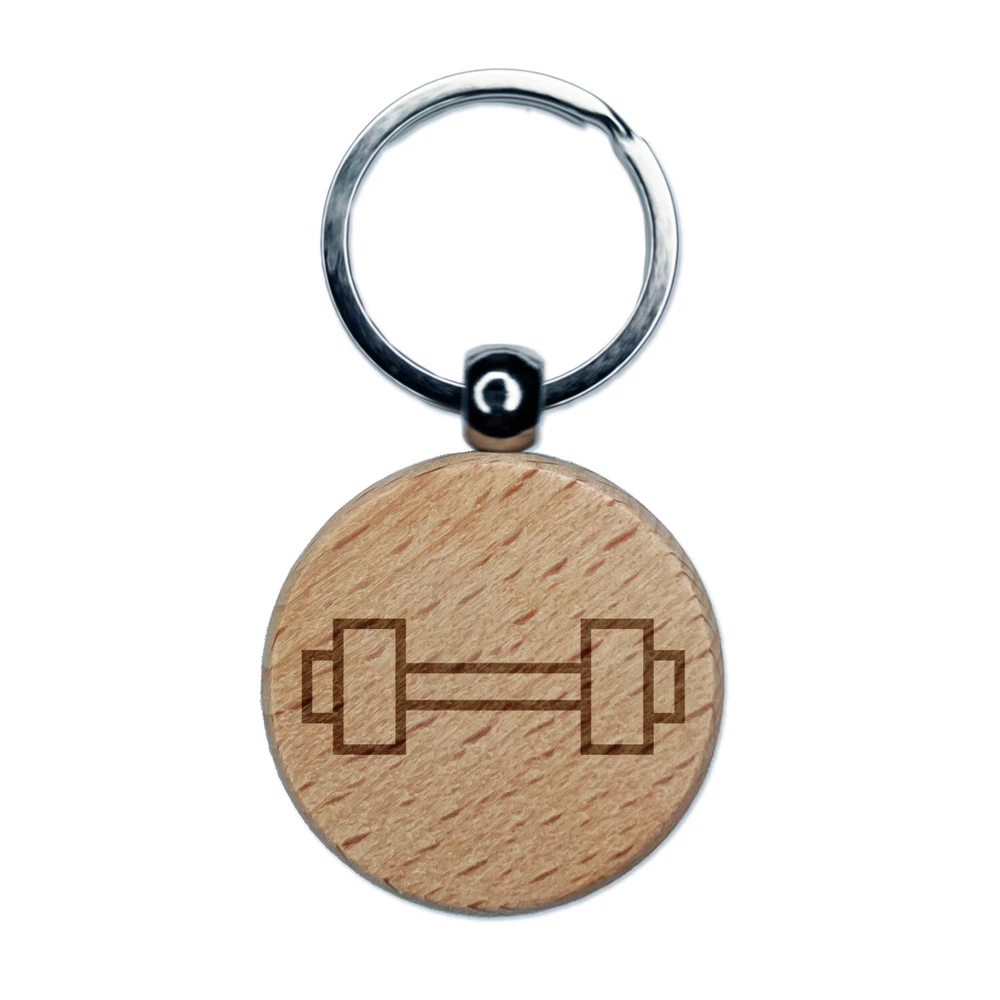 Dumbbell Barbell Weight Lifting Outline Engraved Wood Round Keychain Tag Charm