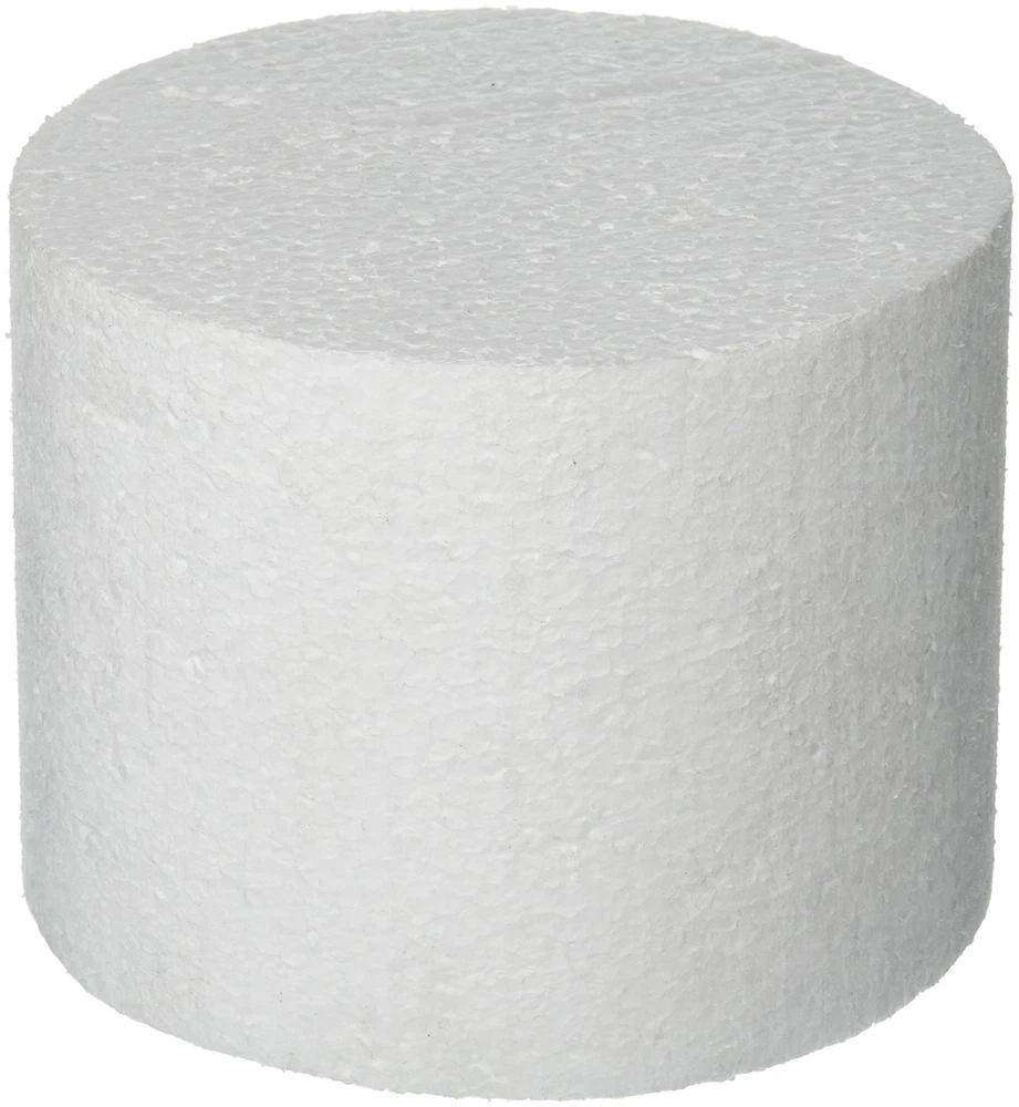 Shape: Round Size: 5" Round X 4" High Materials: Solid Styrofoam. Slight imperfections are considered normal and can be fixed with icing Product of USA Sold individually, size is approximate