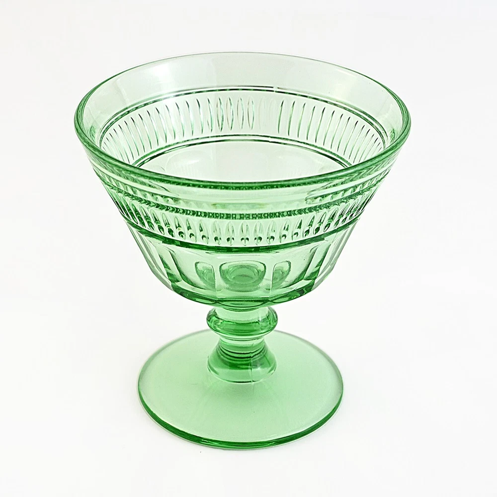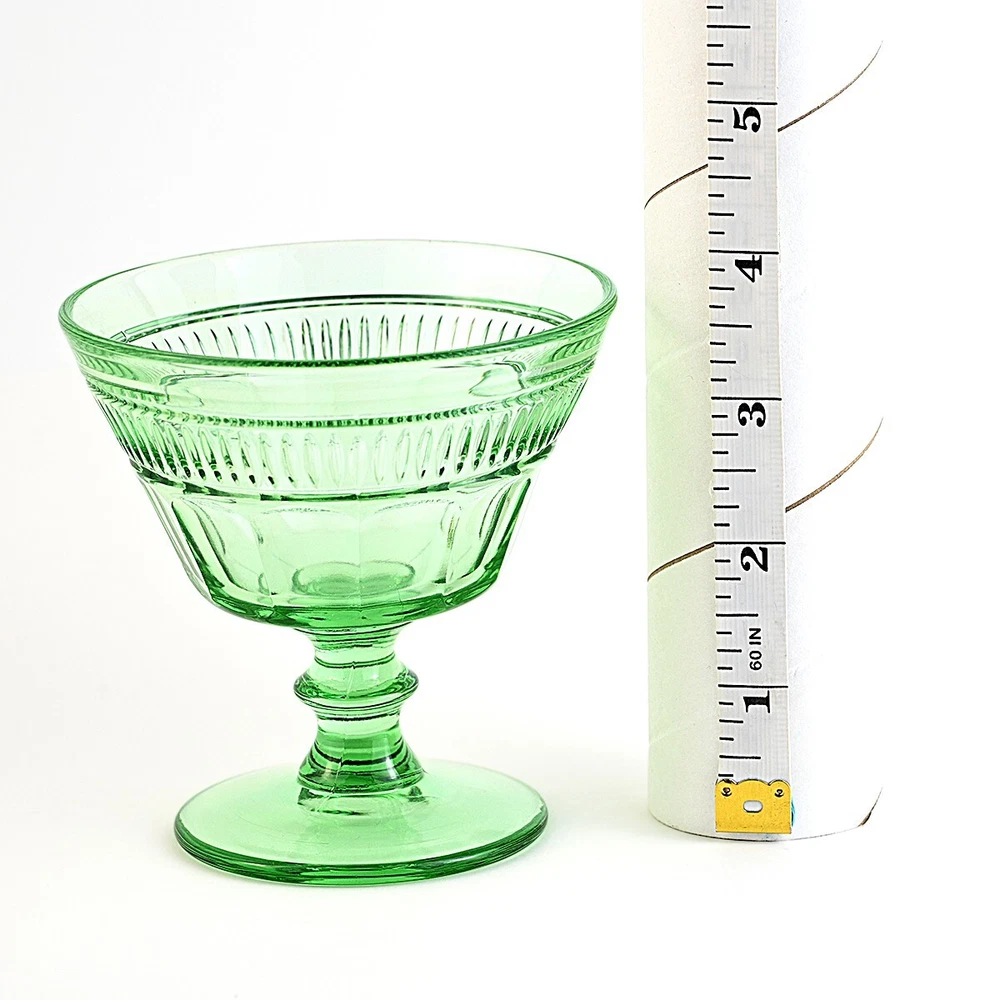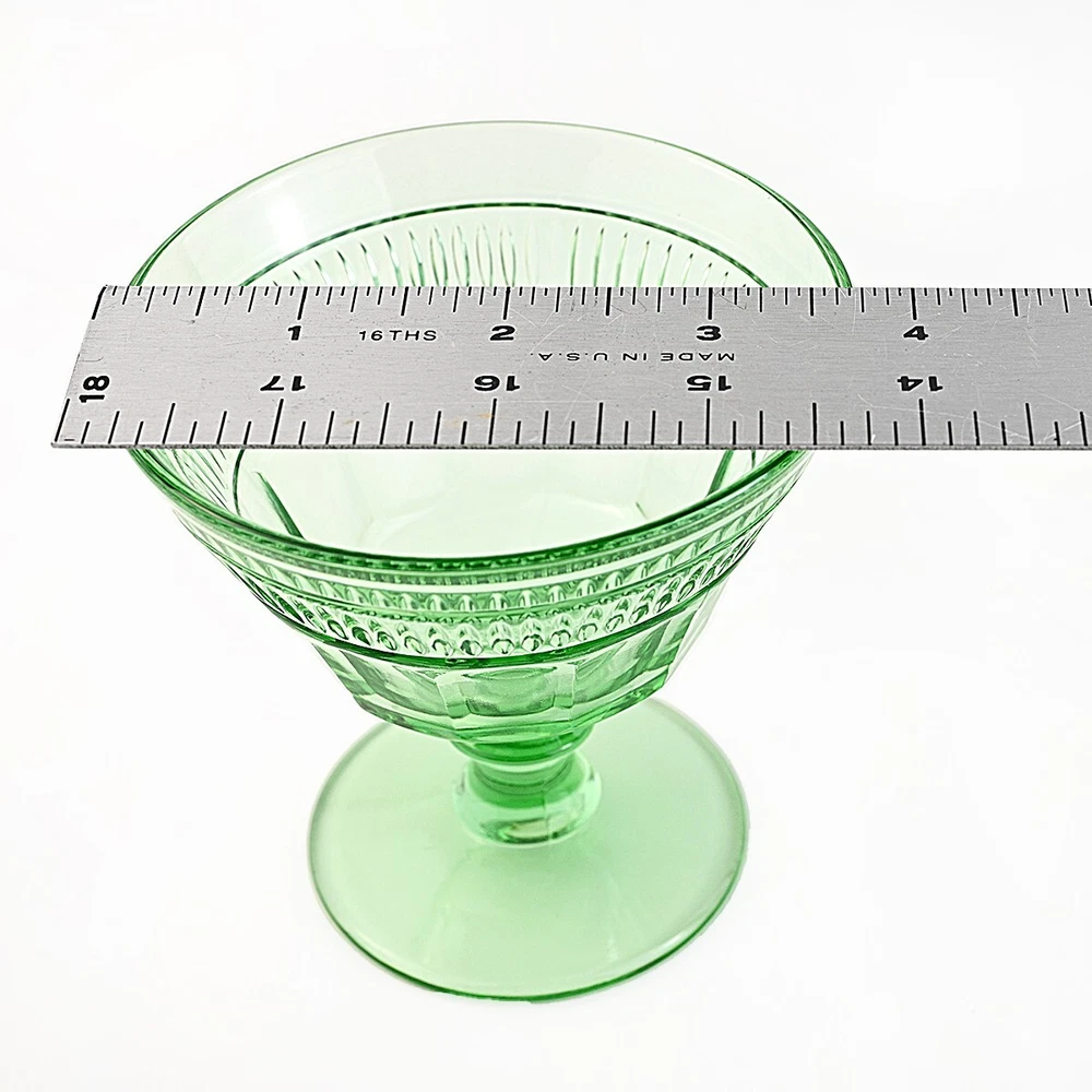For sale are 7 Duncan Miller Waterford Green (a beautiful Emerald Green color) Footed 4" Cocktail or Dessert Glasses manufactured in the 1930s. The pattern # 102. (HMW#2p81) The photos don't do these glasses justice, they really sparkle and glow. These are vintage items and so are pre-owned and used. They may show some signs of cosmetic ware but are in good condition with no chips or cracks. There may be some slight imperfections caused during the manufacturing process. Please see images for size, condition and details. Feel free to reach out to me with any questions and thanks for looking! Your item will be packaged carefully and mailed the best way with tracking.