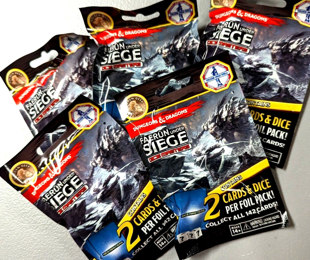 Dungeons & Dragons - FAERUN UNDER SIEGE Dice Masters Foil Packs Packs contain: 2 dice and 2 cards Buy 2 or more packs for 15% off and FREE SHIPPING Ships within 3 business days with USPS tracking Local pickup available from Fair Haven, NJ