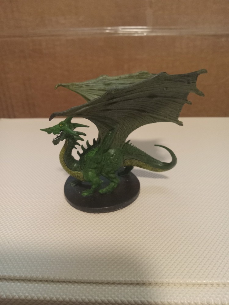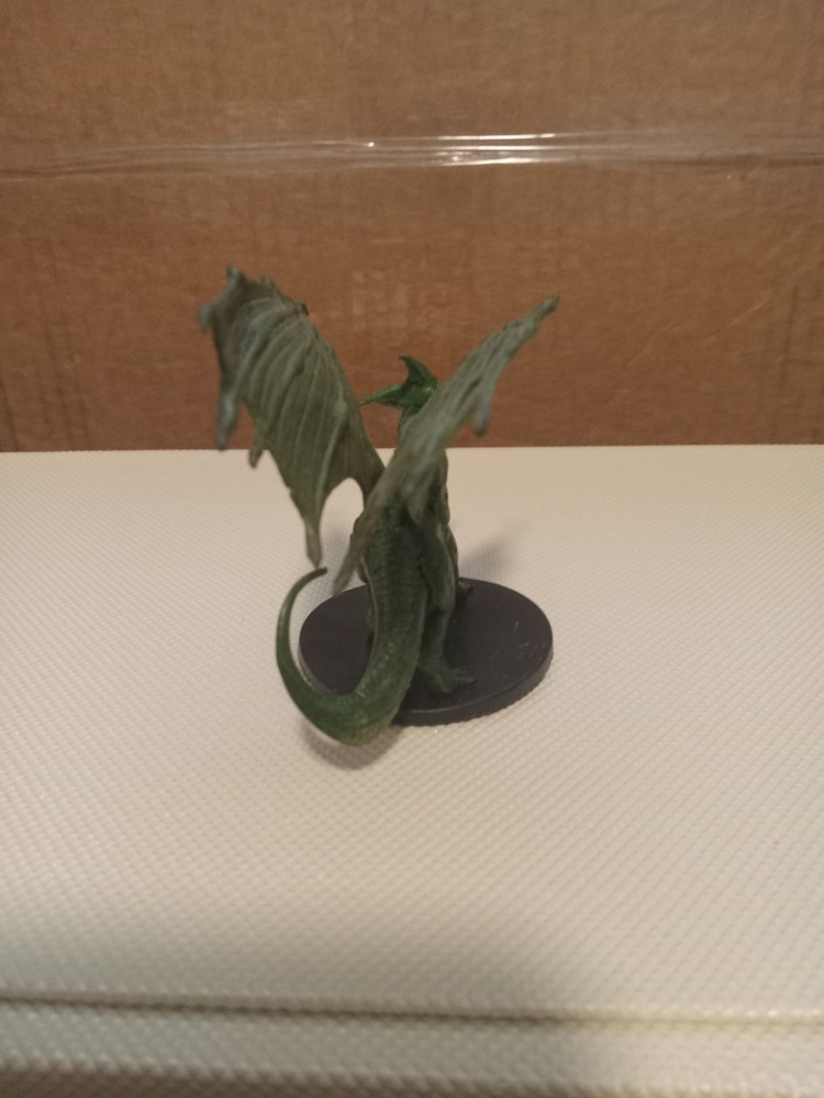 The product is a Dungeons & Dragons miniature young green dragon from the 2008 Wizards Starter Set. Produced by Wizards of the Coast, this collectible miniatures is part of the D&D character family, offering fans and players a unique and detailed addition to their tabletop gaming experience. Perfect for collectors and enthusiasts, this miniature brings a piece of the beloved game world to life in a compact and charming form.
