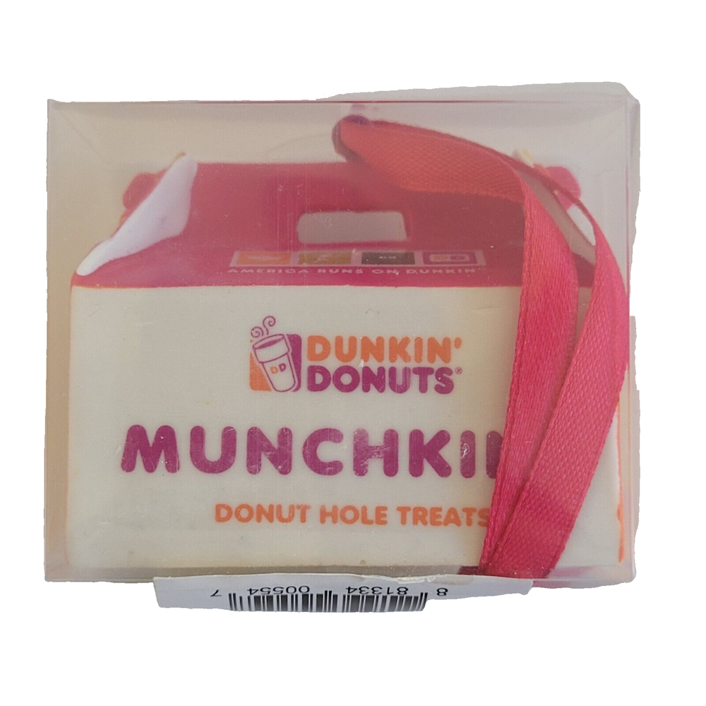 The Dunkin Donuts 2013 Box of Munchkins Donut Holes Christmas Ornament is a small resin ornament shaped like a Dunkin Donuts Munchkin Box. It features a multicolor design and is designed for hanging on a Christmas tree. This novelty ornament is part of the Novelty Christmas Tree Ornaments theme and is reusable for future holiday seasons. It does not include any personalization options and was manufactured in China in 2013. This item has been kept in a smoke-free and pet-free environment. Please look closely at all the photos attached. Should you have any questions, please do not hesitate to ask. Thank you.
