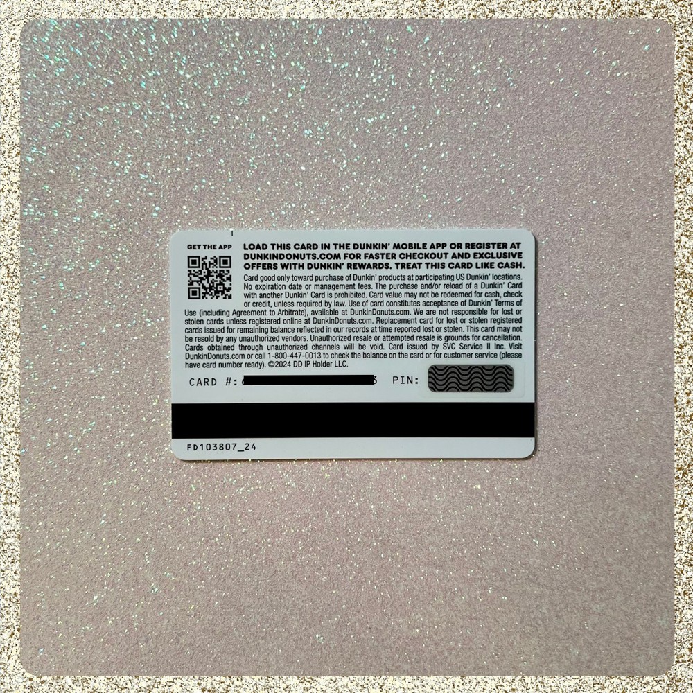 This listing is for a Dunkin Donuts Gift Card. The card is brand new with the PIN still intact. It has no stored value at this time, but you can load money to the card at a Dunkin/BR store or on the app. Buy with confidence. If I didn't have to provide tracking, I wouldn't charge for shipping.
