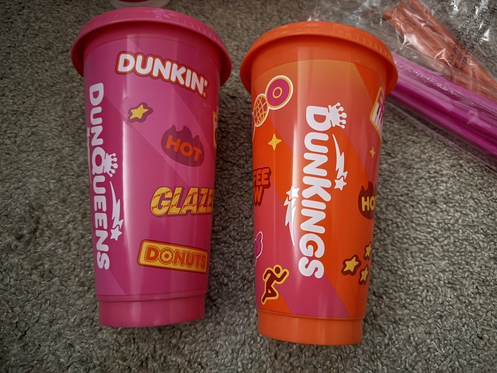 Lot of (10) Dunkin cups with lid and straws All brand new