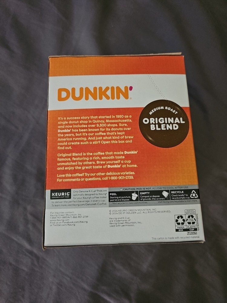 Dunkin' Original Blend Medium Roast Keurig K-Cup Pods 22 Count Exp 6/25