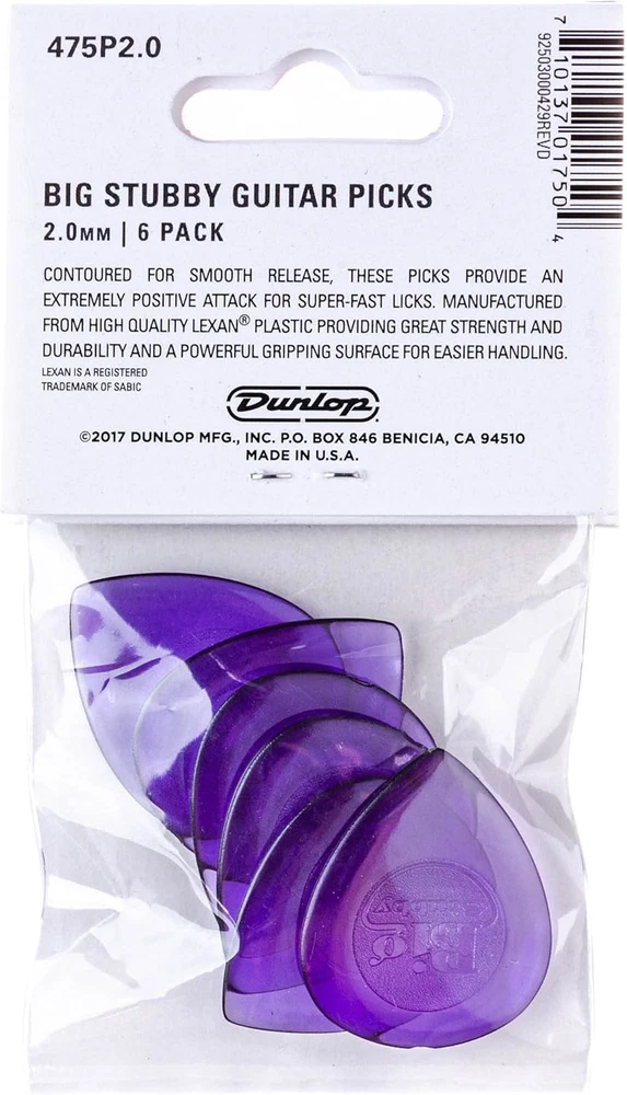 Fast Shipping Great Customer Support Satisfaction Guaranteed DESCRIPTION Shipping Shipping Shipping All domestic packages are shipped for Free (Unless other shipping method was selected during the checkout) Most items ship and arrive much sooner than the estimate delivery date. Usually within 2-3 days from payment. However, we have longer estimates to compensate for the occasional delay or supply chain breakdown. We do not accept P.O. BOXES - PLEASE PROVIDE A PHYSICAL ADDRESS Return Return Return In the event that you would like to return your purchase, we allow returns that are processed within the defined return date (the return date is to be found in the return policy/shipping and handling section) Please contact us for a return authorization and the return shipping address. Payment Payment Payment PayPal is our preferred method of payments it's the quickest, easiest and most secure way to pay for your goods or services online. PayPal offers buyer and seller protection should there be a problem. If you do not have a PayPal account, to get started and buy your first item with us is very easy. Simply click on the 'Buy It Now' button and follow the eBay checkout steps. Select PayPal as the payment method you then will be given the chance to enter your card details in to PayPal's secure checkout in order to pay for your order. Once the payment has been made, you will then be given the opportunity to make your own PayPal account to make paying for your items in the future very easy. Should there be a problem with payment please do let us know. Feedback Feedback Feedback Customer satisfaction is very important to us. If you have any problem with your order,please contact us and we will do our best to make you satisfied, please do not leave a negative feedback before we resolve your problem. We guarantee that your issue will be solved quickly. As long as you are happy with your purchase of , please leave us a positive feedback. Your feedback is very important to us it affects our search placement on eBay. We will leave a positive feedback for you in return automatically once we receive your feedback. Contact Us Contact Us Contact Us If you have any queries, please contact us via ebay. We usually respond within 24 hours on weekdays. Thank you for visiting our ebay store! Contoured for smooth release Package Dimensions: 5.0 H x 1.0 L x 5.0 W (centimeters) Contoured for smooth release, these picks provide an extremely positive attack for super-fast licks. Manufactured from Lexan , providing great strength and durability. Larger profile for greater control. (Lexan is a registered trademark of General Electric Plastics.) Gauges (mm): 1.0, 2.0, 3.0mm. 2.0mm - Purple 12 Picks Per Player's pack Dunlop Big Stubby Guitar Picks 2.0mm - Premium Quality 3-Pack Click here to see description Fast Shipping Great Customer Support Satisfaction Guaranteed DESCRIPTION Shipping All domestic packages are shipped for Free (Unless other shipping method was selected during the checkout) We ship within two business days of payment, usually sooner Standard FREE shipping takes between 3-5 business days Expedited shipping takes between 2-3 business days Overnight shipping takes between 1-2 business days We do not accept P.O. BOXES - PLEASE PROVIDE A PHYSICAL ADDRESS We Ship Globally using ebay's GSP, the item is sent to a logistic center in KY and shipped from there to the rest of the world. International customers are responsible for all duties and taxes Contact your local authority for questions related to the amount of duties or taxes you will be responsible for Return In the event that you would like to return your purchase, we allow returns that are processed within the defined return date (the return date is to be found in the return policy/shipping and handling section) Please contact us for a return authorization and the return shipping address. Please contact us for a Return Merchandise Authorization (RMA) number. We advise you to use a reputable carrier service when returning your goods. Please pack all returns appropriately. We ship globally Via eBay's global shipping program (GSP). Thus we don't cover returns for items shipped globally. Buyers returning such items will be refunded ONLY for the item's cost and not for the shipping. please check the Voltage information and make sure it matches the one in your country. In case it's not stated in the description, do ask us. Payment PayPal is our preferred method of payments it's the quickest, easiest and most secure way to pay for your goods or services online. PayPal offers buyer and seller protection should there be a problem. If you do not have a PayPal account, to get started and buy your first item with us is very easy. Simply click on the 'Buy It Now' button and follow the eBay checkout steps. Select PayPal as the payment method you then will be given the chance to enter your card details in to PayPal's secure checkout in order to pay for your order. Once the payment has been made, you will then be given the opportunity to make your own PayPal account to make paying for your items in the future very easy. Should there be a problem with payment please do let us know. Feedback Customer satisfaction is very important to us. If you have any problem with your order,please contact us and we will do our best to make you satisfied, please do not leave a negative feedback before we resolve your problem. We guarantee that your issue will be solved quickly. As long as you are happy with your purchase of , please leave us a positive feedback. Your feedback is very important to us it affects our search placement on eBay. We will leave a positive feedback for you in return automatically once we receive your feedback. Contact Us If you have any queries, please contact us via ebay. We usually respond within 24 hours on weekdays. Thank you for visiting our ebay store! Contoured for smooth release Package Dimensions: 5.0 H x 1.0 L x 5.0 W (centimeters) Contoured for smooth 