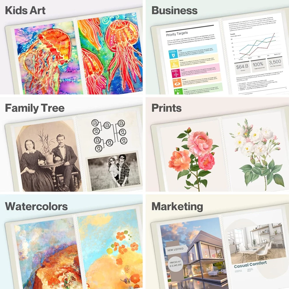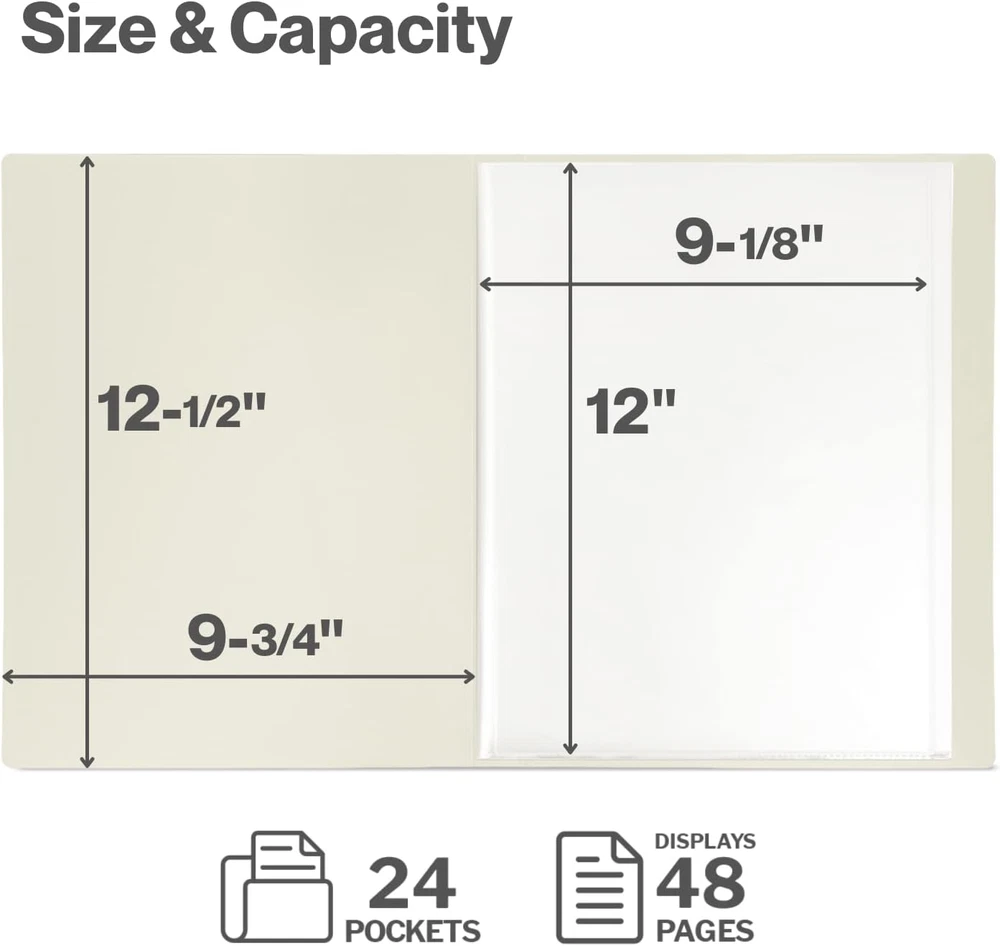 Store New Arrivals Add to Favorite View Feedback Contact Dunwell 9X12 Presentation Book (Black), 24-Pocket Folder with Clear Plastic Sleeves, Displays 48 Pages of 9 X 12 or A4 Documents, Certificates, Kids Art, Keepsakes, Acid-Free Portfolio Binder Description Item model number PRSBK0912 Style 9x12 (1 PK) Capacity 0.5 Inches Pattern Solid Country of Origin China Theme Photo Booklet Frame Type sturdy poly plastic, clear plastic Number of Pieces 1 Batteries required No Special Feature 24 Pockets Displays 48 Pages, Top-Loading, Acid-Free Poly, Customizable Front View Pocket, Non-glare, non-cling Product Dimensions 12.5"L x 0.7"W x 9.75"H Material Polypropylene Model Name PRSBK0912 Specific Uses For Product photos, artwork, drawing, stencils, documents, certificates, keepsakes Included Components sheet protector Item Weight 8.8 ounces Occasion Engagement, Graduation, Birthday, Valentine's Day Target Audience Friends and Family Color Black Pages 48 Pages Shape Rectangular Recommended Uses For Product Photo Album Manufacturer CRANBURY Brand CRANBURY Size 9x12" 9 x 12 Art Presentation Book: Black cover, ivory white inside, Displays paintings, photos, artwork, drawing, stencils. Art storage binder is water, spill and dirt-resistant. 24 Sleeves: Plastic 9x12 binder folder has 24 bound (non-refillable) top-loading binder sleeves, 12 x 9 folder displays 48 viewable pages of 9x12 content, A4 or 8.5x11 Letter Size paper. Personalize it! Front cover has clear plastic pocket for adding a cover sheet, flyer, marketing collateral, photo, artwork, etc. Acid-Free Poly: 9x12 Sheet Protectors: Lightweight poly is non-glare, non-cling, acid-free, no ink lift-off. 9x12 Album preserves your valued papers, photography, artwork, watercolors or keepsakes. Size: 9x12 Album outside measures 9.75(W) x 12.5(L) x 0.5"(H). Front cover has inner pocket for loose paper. Pockets are 9x12", each can hold 10 sheets. Lies flat when open. Product Description CRANBURY 9x12 Presentation Binder (Also Fits A4) For Home or Office Brighten Your Life with great looking Presentation Books by CRANBURY. Attractive sturdy poly black cover with ivory interior and clear view pocket. The perfect solution for 9x12 or A4 business content. Keep your valued certificates, photography, and artwork with confidence. Many Uses Professional presentations Binder for kids projects Certificate holder book Store receipts and records Preserve artwork and sketches 9x12 or A4 Content Customize it! This display book is constructed with a heavy duty poly cover that incudes a clear front cover pocket for labeling your content. 24 Sleeves, Displays 48 Pages Each book has 24 bound (non-refillable) top-loading sleeves, that lets you display 48 pages. Each pocket can also comfortably hold 10 sheets of 9x12 or A4 size paper. Archival Quality Poly Sleeves The poly plastic clear sheet protectors are sturdy, acid-free, PVC-free, with no ink lift-off, designed for long term document storage. Makes a Great Project Binder for Kids! The CRANBURY 9x12 Art Presentation Book is a great way to display paintings, artwork, drawings and stencils. Or use this size presentation book as a project binder for kids. Store, preserve, and show off their watercolor or finger painting art, preschool projects, school certificates and awards, drawings, and other keepsakes. It is also a great way to organize distance learning and homeschool projects. ABOUT US We offer the best prices around on high quality products. Our E-store includes media such as books, movies, music and games while offering electronics, toys, sporting apparel, clothing, tools, general home, garden items and more. SHIPPING We are always working hard to ensure your package arrives as soon as possible. Please understand that some factors like weather, high postal traffic, and the performance of shipping companies are outside of our control. We offer free shipping to the lower 48 states and ship within 2 business days of payment, usually sooner. We do not accept P.O. Boxes. Please provide a physical address. RETURNS We offer a 30-Day Return Policy on items which you are not completely satisfied with. You have the option for a full-refund or an exchange of the item. No returns are available on items shipped outside of the USA. PAYMENT We accept PayPal. CONTACT US This page content is yet to come Please ad us to your favorite seller and visit again later Thank You CUSTOMER SATISFACTION We try our very best to make sure every customer is completely satisfied. If there's a problem, message us! We're happy to help.