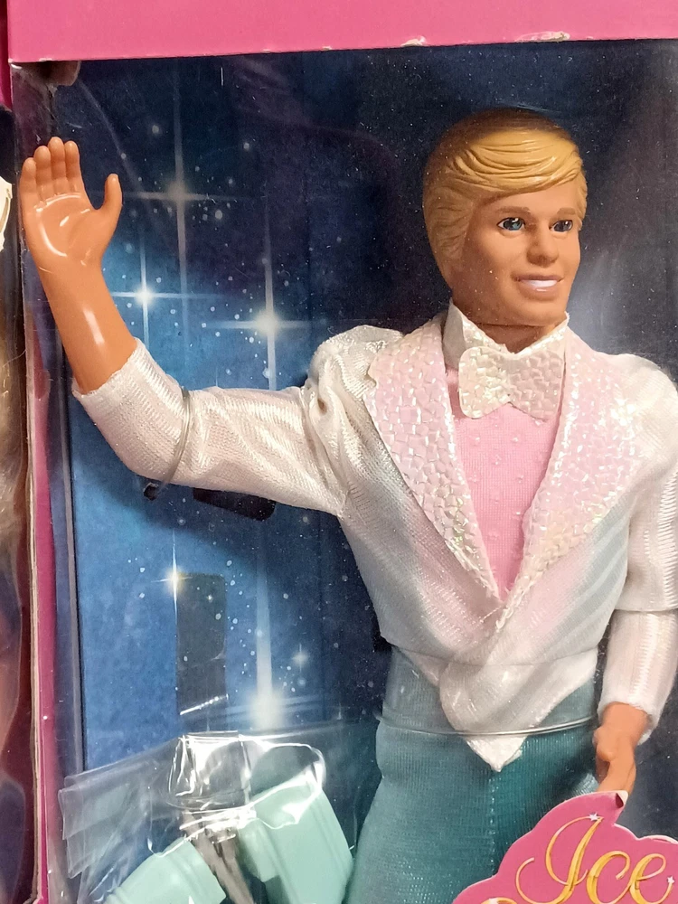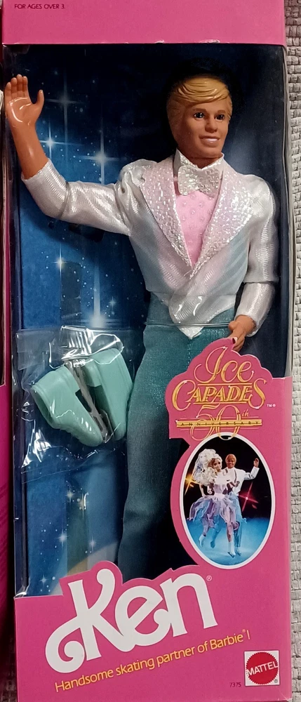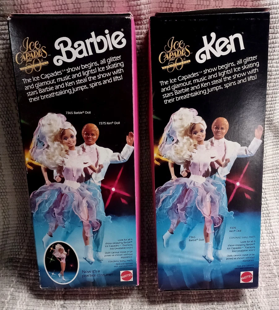 This vintage Ken and Barbie set from 1989 is a must-have for any collector. The duo is dressed in their Ice Capades outfits and ready to be displayed. The set includes both Ken and Barbie, and it is in its original, unopened packaging. The dolls are 12 inches in size and have blonde hair and blue eyes. They are in excellent condition and are an original, licensed reproduction from the 1980s. This set is perfect for anyone who loves vintage dolls or wants to add a unique piece to their collection.