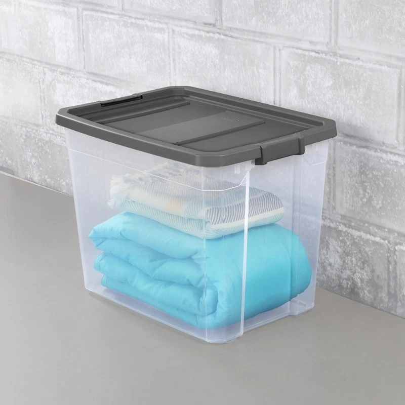 Durable 108 Qt Clear Stackable Storage Bin with Lid for Garage Closet Attic