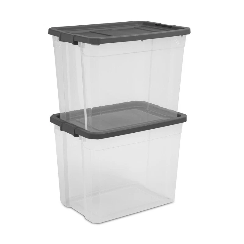 You may also like 2 Pack 12 Gallon Stackable Plastic Storage Bin Container W/ Snap On Lid New 28.87 USD 30.39 USD Free shipping 5% off File Storage Box Stackable Hanging Files Clear Container Organize Documents New 23.68 USD 24.93 USD Free shipping 5% off Heavy Duty 12 Gallon Industrial Tote Plastic Storage Box W/ Hinged Lid Stackable 14.59 USD 15.36 USD Free shipping 5% off 50 Gallon Stackable Plastic Storage Bin Tote W/ Snap-on Lid & Easy Grip Handles 27.07 USD 28.49 USD Free shipping 5% off 2 Pack Set of 4 Stackable Clear Storage Bins W/ Snap-on Lids Organizing Clothes 25.87 USD 27.23 USD Free shipping 5% off Airtight Plastic Storage Bins Clear Lids Stackable Heavy Duty Organization Totes 29.95 USD 31.53 USD Free shipping 5% off Stackable Small Plastic Storage Box W/ Click Tight Lid & Carrying Handles New 12.55 USD 13.21 USD Free shipping 5% off Happy Christmas Storage Tote Bin Stackable Removable Lid Holiday Organizer New 19.52 USD 20.55 USD Free shipping 5% off Narrow Storage Bins Clear Plastic Easy Access Carry Handles 8 Count Container US 29.02 USD 30.55 USD Free shipping 5% off Plastic Storage Bins W/ Lids Stackable Tote Durable Organizing Container 12.95qt 10.31 USD 10.85 USD Free shipping 5% off 21 Compartment Clear Plastic Bead Storage Box Organizer Jewelry Crafting New 12.17 USD 12.81 USD Free shipping 5% off Stackable Plastic Storage Bins W/ Lids Home Office Organization Durable Totes US 15.7 USD 16.53 USD Free shipping 5% off In need of a durable storage system for closets, basements, garages, or attics? The Modular Stacker line features rugged construction for added peace of mind that contents will stay safely stored inside. The 108 Quart Stacker Box is the perfect size for sports equipment, extra bedding, and camping supplies, and the clear base allows quick viewing of contents. The robust latches offer extra security that the lid will stay attached to the base, and the textured surface makes for a sure grip when carrying. The deep recessed lids provide stability when stacking for efficient use of storage space. The 108 Quart Stacker Box shares the same lid as the 40 and 76 Quart Stacker Boxes allowing secure stacking of both the shallow and deep storage boxes in one footprint. The overall assembled dimensions of this item are 25 3/4" L x 18 3/8" W x 19 3/8" H. 108 Quart Stacker Box, Durable Clear Plastic Bin with Lid, Dark Gray Outside Dimensions: 25 3/4" x 18 3/8" x 19 3/8" Interior Dimensions at bottom: 20" x 14 5/8" x 18 7/8" This durable storage solution is ideal for garages, basements, attics, and more Heavy duty latches help to secure the lid to the base and provide a sure grip surface Deep indexed lid surface allows multiple totes to stack securely BPA-free and phthalate-free You may also like 12 Qt Stackable Plastic Storage Bins 2 Pack W/ Handles Clear Organizers New 13.98 USD 14.72 USD Free shipping 5% off 3500 Tackle Bag W/ Trays Quick Access Mesh Pocket Adjustable Shoulder Strap New 14.58 USD 15.35 USD Free shipping 5% off Calming Chews Dogs Anxiety Relief Chicken Flavor 90 Count Stress Support New 39.12 USD 41.18 USD Free shipping 5% off Mobile Pedestal File Cabinet 3-Drawer Office Storage Unit W/ Hidden Casters New 73.05 USD 76.89 USD Free shipping 5% off Double Curtain Rod Set Metal Cage Expandable Steel Brackets Hardware Included US 29.57 USD 31.13 USD Free shipping 5% off Lightweight Plush Bean Bag Chair Kids Teens Compact Refillable Durable New 46.91 USD 49.38 USD Free shipping 5% off Large Clear Fishing Tackle Organizer Prolatch Stowaway Box Anglers Techniques US 81.76 USD 86.06 USD Free shipping 5% off Cast Iron Pizza Pan Preseasoned Skillet Multi Use Non Stick Kitchen Cookware 36.71 USD 38.64 USD Free shipping 5% off 8inch Cable Ties Nylon Durable 20Pcs Cable Organization Packing Transport New 21.76 USD 22.91 USD Free shipping 5% off Recumbent Magnetic Exercise Bike Adjustable Resistance LCD Home Gym Equipment US 234.42 USD 246.76 USD Free shipping 5% off Enameled Cast Iron Dutch Oven 4QT Self Basting Lid Induction Safe Cookware New 56.34 USD 59.3 USD Free shipping 5% off Weather Resistant Square Patio Table Tempered Glass Steel Frame Outdoor Dining 162.54 USD 171.09 USD Free shipping 5% off