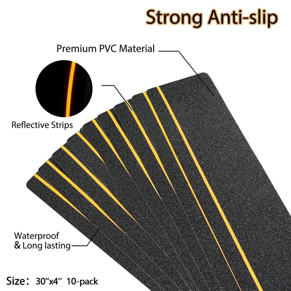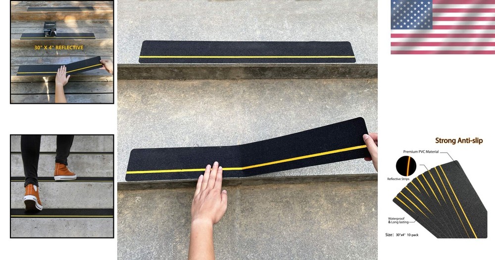 Durable 10-Pack Anti-Slip Stair Treads - 4" x 30" with Yellow Reflective Strips < class="slides"> ‹ › ‹ › ‹ › ‹ › ‹ › ‹ › ‹ › ‹ › ‹ › ‹ › Durable 10-Pack Anti-Slip Stair Treads Size: 4" x 30" with Yellow Reflective Strips Safety First for Loved Ones Cost-effective, multi-functional safety product designed to prevent slips and falls on stairs or slippery surfaces. Includes bright yellow reflective strips for enhanced visibility in low-light conditions. Works on Multiple Surfaces Strongly adheres to smooth and rough surfaces, including wood, tile, stone, concrete, metal, plastic, and glass. Provides all-around protection and comfort in a variety of settings such as homes, hotels, restaurants, and schools. Pre-Cut Size Each piece is precisely cut to 30" x 4", fitting most stair and step sizes effortlessly. Say goodbye to measuring hassles and enjoy instant safety in your space. Super Easy to Use Simple "Peel off and Stick on clean and dry Surface" application. No nails, rollers, or glue required—just remove the paper backing and apply. Waterproof and Long Lasting Engineered to endure heavy foot traffic and varied weather conditions, including rain, snow, and heat. Resistant to oils and detergents, ensuring a long-lasting, exceptional grip on all surfaces. Why Choose Our Anti-Slip Stair Treads? Your family's safety is paramount, and our Durable Anti-Slip Stair Treads offer an easy and effective solution to keep loved ones safe from slips and falls. With their versatile adhesion and longevity, these treads suit both residential and commercial environments, making them an ideal choice for anyone looking to enhance safety. Elevate your safety standards today—order your 10-pack of Durable Anti-Slip Stair Treads and create a safer space for those you care about! Shipping Free & Fast Shipping - We offer free shipping to most of the USA with a normal delivery time of 3-7 days. However, due to the current situation, additional delivery time (up to 3 weeks) may be required for some items. Alternative Carriers - We may use alternative carriers (e.g. USPS, FedEx, UPS, etc.) to ensure your package arrives safely and on time. Due to the use of multiple carriers, we are unable to provide a tracking number automatically. Handling Time - Orders are processed and shipped within 1-2 business days of receiving cleared payment. Shipping Restrictions - Shipping to Alaska, Hawaii, Puerto Rico, Guam, and other US territories may incur shipping charges or delivery restrictions. Please contact us before ordering, or your order can be refunded/cancelled. State Restrictions - There may be restrictions based on your state of purchase. For example, certain items may not be shipped to California due to state regulations. Contact for Tracking Updates - If you require tracking updates or have any concerns about the delivery of your order, please feel free to contact us, and we will be happy to assist you. Return 30-Day Hassle-Free Returns - We want you to be completely satisfied with your purchase. If you are not, you can return the item within 30 days of receiving it for a full refund or exchange. Easy Return Process - To start a return, simply contact us and we will provide you with a prepaid return shipping label and detailed instructions. Restocking Fee - There are no restocking fees for returns. However, the buyer is responsible for return shipping costs if the return is not due to a seller's error. Refund Processing Time - Refunds will be processed within 5 business days of receiving the returned item in its condition. Payment We accept all major credit cards, PayPal, and Apple Pay for your convenience. Your payment information is secure and encrypted to ensure a safe and seamless transaction. Please complete your payment within 3 days of purchase to avoid any delays in shipping. Feedback Your feedback is extremely important to us. We strive to provide the best products and customer service possible. If you are satisfied with your purchase, please take a moment to leave us a positive review. If you have any concerns or issues with your order, please contact us before leaving negative feedback. We are committed to resolving any problems and ensuring your satisfaction. Contact Us If you have any questions or concerns, please feel free to out to our customer support team. You can contact us through the eBay messaging system. We are available Monday to Friday, 9:00 am to 5:00 pm EST, and we will do our best to respond to your inquiry within 24 hours. Buy it now and enjoy a pleasant shopping experience! Unit Quantity: 10 Type: Anti-Skid Tape Unit Type: Unit