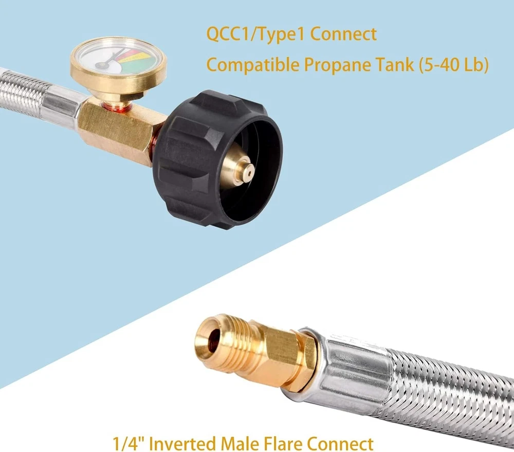 Durable 12-Inch Propane Hose with Gauge – Perfect for RV & Camping Use ‹ › ‹ › ‹ › ‹ › ‹ › ‹ › ‹ › ‹ › ‹ › Durable 12-Inch Propane Hose with Gauge Your Ideal Companion for RV & Camping Adventures! Product Specifications: Length: 12 inches Includes: Propane tank gauge Compatible with: 2-Stage Regulator (2 PCS) Connection Method: QCC1/Type1 connector for 5 to 40 pounds of propane tanks. 1/4" inverted male flare connector compatible with RV or trailer propane regulators (NOT 1/4'' Male NPT). Practical Dial: The vibrant color dial allows you to easily monitor your liquid propane levels, eliminating the need for shaking or guesswork. Safety Performance: Engineered with overheat and flow protection for your peace of mind. High-quality rubber hose with a stainless steel braided protective belt shields you against irritations from small animals. Easy to Install: Intuitive handwheel tightening requires no toolbox, making setup a breeze! Perfect for BBQs, RVs, camping needs, and outdoor cooking expeditions. Why Choose Our 12-Inch Propane Hose? Are you in search of a reliable, user-friendly solution for your propane needs during camping or RV trips? Our Durable 12-Inch Propane Hose with Gauge boasts superior safety features and flexible compatibility to ensure you enjoy worry-free cooking experiences outdoors. The practical color dial lets you effortlessly monitor propane levels, while the rugged design offers robust protection against unexpected hazards. Embrace the luxury of convenience and safety on your adventures - order your 12-Inch Propane Hose today and experience the difference! Shipping Free & Fast Shipping - We offer free shipping to most of the USA with a normal delivery time of 3-7 days. However, due to the current situation, additional delivery time (up to 3 weeks) may be required for some items. Alternative Carriers - We may use alternative carriers (e.g. USPS, FedEx, UPS, etc.) to ensure your package arrives safely and on time. Due to the use of multiple carriers, we are unable to provide a tracking number automatically. Handling Time - Orders are processed and shipped within 1-2 business days of receiving cleared payment. Shipping Restrictions - Shipping to Alaska, Hawaii, Puerto Rico, Guam, and other US territories may incur shipping charges or delivery restrictions. Please contact us before ordering, or your order can be refunded/cancelled. State Restrictions - There may be restrictions based on your state of purchase. For example, certain items may not be shipped to California due to state regulations. Contact for Tracking Updates - If you require tracking updates or have any concerns about the delivery of your order, please feel free to contact us, and we will be happy to assist you. Return 30-Day Hassle-Free Returns - We want you to be completely satisfied with your purchase. If you are not, you can return the item within 30 days of receiving it for a full refund or exchange. Easy Return Process - To start a return, simply contact us and we will provide you with a prepaid return shipping label and detailed instructions. Restocking Fee - There are no restocking fees for returns. However, the buyer is responsible for return shipping costs if the return is not due to a seller's error. Refund Processing Time - Refunds will be processed within 5 business days of receiving the returned item in its original condition. Payment We accept all major credit cards, PayPal, and Apple Pay for your convenience. Your payment information is secure and encrypted to ensure a safe and seamless transaction. Please complete your payment within 3 days of purchase to avoid any delays in shipping. Feedback Your feedback is extremely important to us. We strive to provide the best products and customer service possible. If you are satisfied with your purchase, please take a moment to leave us a positive review. If you have any concerns or issues with your order, please contact us before leaving negative feedback. We are committed to resolving any problems and ensuring your satisfaction. Contact Us If you have any questions or concerns, please feel free to reach out to our customer support team. You can contact us through the eBay messaging system. We are available Monday to Friday, 9:00 am to 5:00 pm EST, and we will do our best to respond to your inquiry within 24 hours. Buy it now and enjoy a pleasant shopping experience! Manufacturer Part Number: RV Propane Hose with Gauge UPC: Not Set MPN: RV_Propane_Hose_with_Gauge Unit Quantity: 12 Brand: Unbranded Part Type: Accessories Country/Region of Manufacture: RV Propane Hose with Gauge Warranty: Unspecified Length Unit Type: Not Set