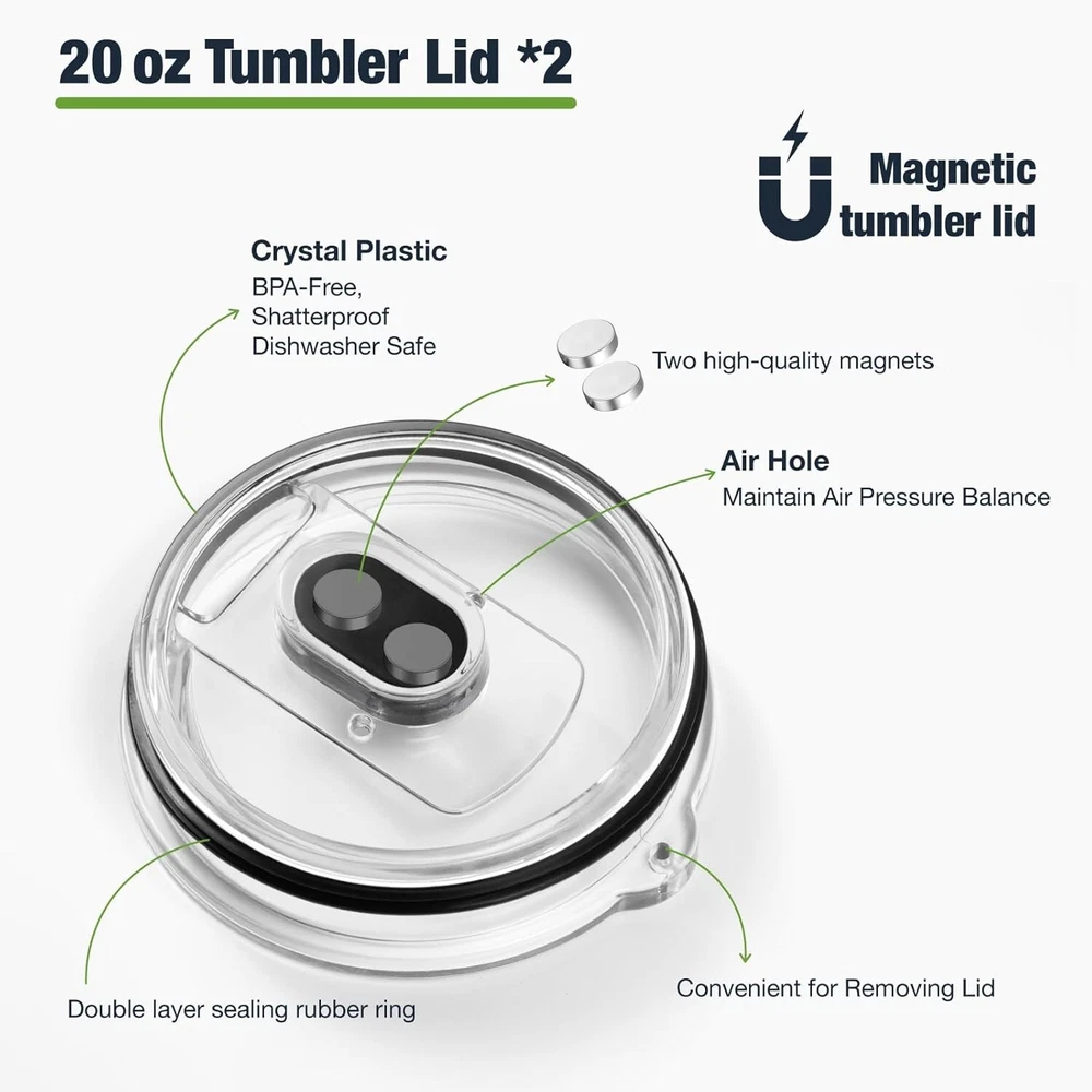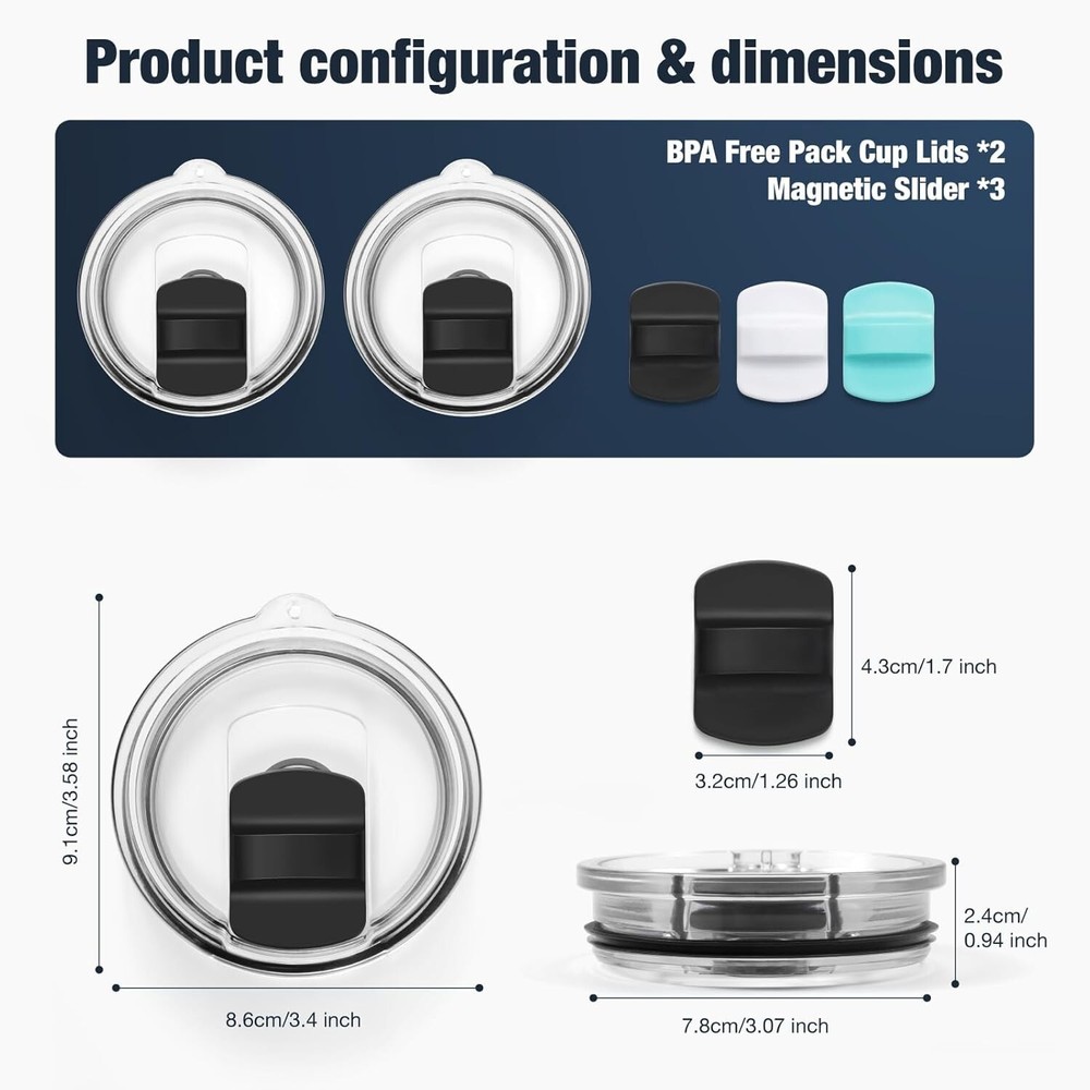 Durable 20 oz Magnetic Lid Set - BPA-Free Slider for YETI Tumbler Owners ‹ › ‹ › ‹ › ‹ › ‹ › ‹ › ‹ › ‹ › ‹ › ‹ › Durable 20 oz Magnetic Lid Set -BPA-Free Slider for YETI Tumbler Owners Specifications: Perfectly compatible with YETI 10 oz Lowball, 10/24 oz Mug, 16 oz Pint and 16/20 oz Tumbler. Available in three cup lid sizes; please ensure to select the correct fit. Features: Made of food-grade SK material, ensuring safety for direct contact. Superior impact resistance and shatter resistance compared to traditional AS material. Enhanced transparency for a sleek look. Robust dual-seal design with two powerful magnets for secure opening and closing. Comes with two 20 oz tumbler lids with black sliders, plus interchangeable magnetic sliders in black, white, and seafoam for customization. Benefits: Temperature preservation, allowing you to enjoy beverages at their best. Stylish customization options to reflect your personal taste. Safe and durable materials for long-lasting use. Assured service with 24-hour assistance for any issues. Why Choose Our Magnetic Lid Set? Elevate your drinking experience with our Durable 20 oz Magnetic Lid Set, expertly crafted for the discerning YETI tumbler owner. Made from , BPA-free SK material, this lid not only ensures safety but also gives you the confidence of enhanced durability. With a dual-seal design and powerful magnets, it guarantees a secure fit that keeps your favorite beverages at the perfect temperature. Plus, with an array of stylish slider options, you can personalize your tumbler to match your unique aesthetic. Don’t settle for anything less than the best for your YETI tumbler—choose our Magnetic Lid Set today and experience the difference! Shipping Free & Fast Shipping - We offer free shipping to most of the USA with a normal delivery time of 3-7 days. However, due to the current situation, additional delivery time (up to 3 weeks) may be required for some items. Alternative Carriers - We may use alternative carriers (e.g. USPS, FedEx, UPS, etc.) to ensure your package arrives safely and on time. Due to the use of multiple carriers, we are unable to provide a tracking number automatically. Handling Time - Orders are processed and shipped within 1-2 business days of receiving cleared payment. Shipping Restrictions - Shipping to Alaska, Hawaii, Puerto Rico, Guam, and other US territories may incur shipping charges or delivery restrictions. Please contact us before ordering, or your order can be refunded/cancelled. State Restrictions - There may be restrictions based on your state of purchase. For example, certain items may not be shipped to California due to state regulations. Contact for Tracking Updates - If you require tracking updates or have any concerns about the delivery of your order, please feel free to contact us, and we will be happy to assist you. Return 30-Day Hassle-Free Returns - We want you to be completely satisfied with your purchase. If you are not, you can return the item within 30 days of receiving it for a full refund or exchange. Easy Return Process - To start a return, simply contact us and we will provide you with a prepaid return shipping label and detailed instructions. Restocking Fee - There are no restocking fees for returns. However, the buyer is responsible for return shipping costs if the return is not due to a seller's error. Refund Processing Time - Refunds will be processed within 5 business days of receiving the returned item in its condition. Payment We accept all major credit cards, PayPal, and Apple Pay for your convenience. Your payment information is secure and encrypted to ensure a safe and seamless transaction. Please complete your payment within 3 days of purchase to avoid any delays in shipping. Feedback Your feedback is extremely important to us. We strive to provide the best products and customer service possible. If you are satisfied with your purchase, please take a moment to leave us a positive review. If you have any concerns or issues with your order, please contact us before leaving negative feedback. We are committed to resolving any problems and ensuring your satisfaction. Contact Us If you have any questions or concerns, please feel free to out to our customer support team. You can contact us through the eBay messaging system. We are available Monday to Friday, 9:00 am to 5:00 pm EST, and we will do our best to respond to your inquiry within 24 hours. Buy it now and enjoy a pleasant shopping experience! Unit Quantity: 1.0 Material: BPA-Free Plastic,SK Material,Food-Grade Plastic Theme: Tumbler Lids Replacement Features: Microwave Safe,With Slider,Magnetic,Dishwasher Safe,Impact Resistant,Shatter Resistant,Dual-Seal Design Department: Adults,Unisex Type: Container Lid Color: Black Beverage Type: Hot or Cold Capacity: 20 oz Lid Type: Magnetic Item Height: 0.9 Inches Keeps Cold For: Not Specified Keeps Hot For: Not Specified Care Instructions: Dishwasher Safe Number of Items in Set: Two-Piece Item Weight: 0.2 kilograms Unit Type: Unit