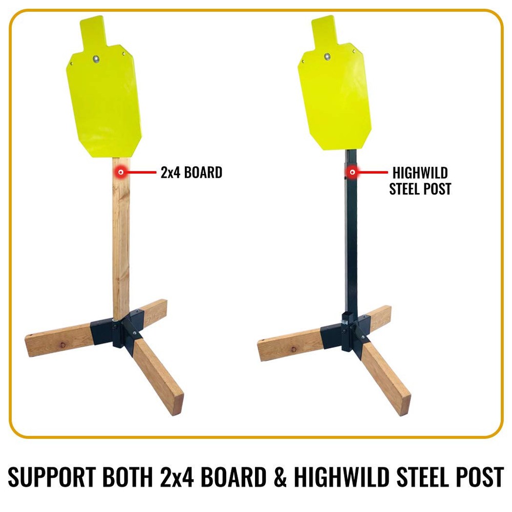 ▶ GREAT COMBO PRICE! Includes 2x4 Target Hanger and Target Stand Base! ▶ TRIPOD STAND BASE with 5-inch deep socket for excellent stability, designed for use with 2x4 board or Adjustable Steel Post. ▶ 2x4 TARGET HANGER holds target at a 15 degree angle to help deflect shrapnel to the ground. ▶ The lightweight design allows it to be taken to any environment for assembly shooting. ▶ Ideal for tactical training scenarios.