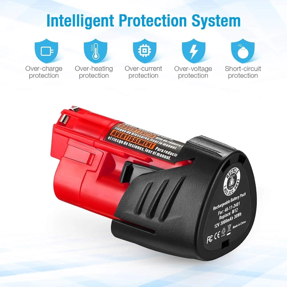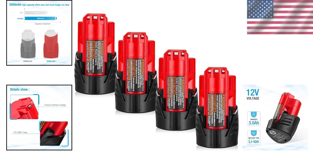 Durable 4-Pack Lithium Ion 12V Batteries for M-12 Tools, Intelligent Protection
