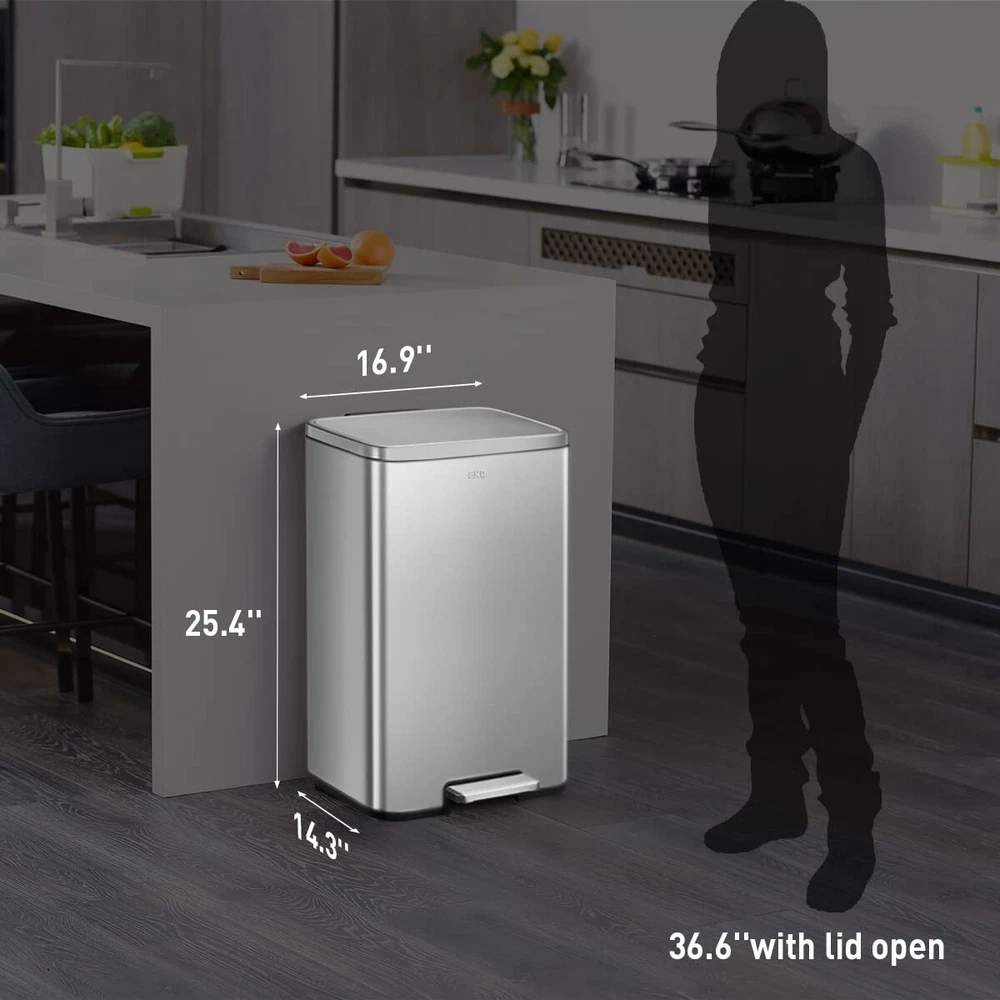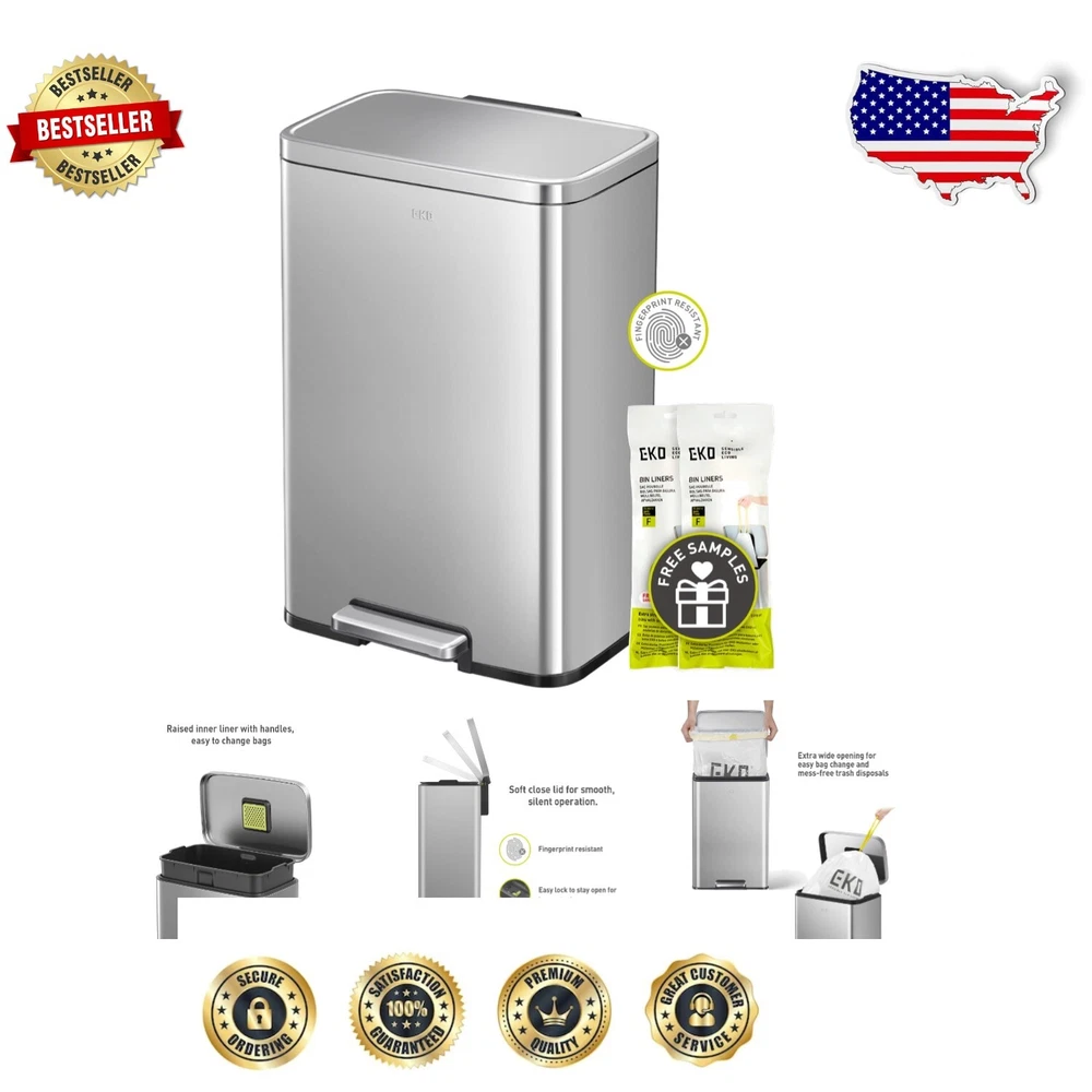 Durable 50 Liter Step Trash Can with Elevating Inner Bucket and Deodorizer ‹ › ‹ › ‹ › ‹ › ‹ › ‹ › ‹ › ‹ › ‹ › ‹ › Durable 50 Liter Step Trash Can with Elevating Inner Bucket and Deodorizer Elegance Meets Functionality Introducing the lavish 50 Liter Step Trash Can , crafted with a luxurious matte metallic stainless steel design. This heavy-duty garbage solution is more than just a trash can – it’s an essential piece of art elegantly enhancing your home or office space. Key Features: Superior Stainless Steel Build: Fingerprint-resistant construction ensures your trash can maintains its pristine appearance. Whisper-Quiet Closing: Enjoy the serenity of your space with a bi-force damper mechanism that allows for a soft open and closure, preventing unexpected slams. Stay Open Lid Lock: Perfect for those moments when you need both hands, the easy-to-use lid lock allows the can to remain open as long as needed. Quality Construction: Designed for durability, the robust foot pedal can endure over 200,000 uses, guaranteeing longevity and reliability. Elevated Inner Bucket with Handles: A convenient raised inner bucket makes bag replacement quick and hassle-free. Built-In Deodorizer Compartment: Keep your kitchen smelling fresh with a dedicated space for your favorite deodorizer under the lid. Spacious Capacity: A generous 50L (13.2 Gallon) capacity that accommodates standard kitchen trash bags for effortless waste disposal. Why Choose Our Step Trash Can? Transform your waste disposal experience with a marvel of modern design. The 50 Liter Step Trash Can combines elegance with innovative features that uphold a sophisticated lifestyle. Why compromise on style when functionality meets luxury? With its whisper-quiet operation and timeless appearance, this product not only elevates your living space but also enhances your daily routine. Upgrade your kitchen experience today with the ultimate blend of beauty, durability, and convenience. Order now and embrace the ease of hands-free trash disposal! Shipping Free & Fast Shipping - We offer free shipping to most of the USA with a normal delivery time of 3-7 days. However, due to the current situation, additional delivery time (up to 3 weeks) may be required for some items. Alternative Carriers - We may use alternative carriers (e.g. USPS, FedEx, UPS, etc.) to ensure your package arrives safely and on time. Due to the use of multiple carriers, we are unable to provide a tracking number automatically. Handling Time - Orders are processed and shipped within 1-2 business days of receiving cleared payment. Shipping Restrictions - Shipping to Alaska, Hawaii, Puerto Rico, Guam, and other US territories may incur shipping charges or delivery restrictions. Please contact us before ordering, or your order can be refunded/cancelled. State Restrictions - There may be restrictions based on your state of purchase. For example, certain items may not be shipped to California due to state regulations. Contact for Tracking Updates - If you require tracking updates or have any concerns about the delivery of your order, please feel free to contact us, and we will be happy to assist you. Return 30-Day Hassle-Free Returns - We want you to be completely satisfied with your purchase. If you are not, you can return the item within 30 days of receiving it for a full refund or exchange. Easy Return Process - To start a return, simply contact us and we will provide you with a prepaid return shipping label and detailed instructions. Restocking Fee - There are no restocking fees for returns. However, the buyer is responsible for return shipping costs if the return is not due to a seller's error. Refund Processing Time - Refunds will be processed within 5 business days of receiving the returned item in its original condition. Payment We accept all major credit cards, PayPal, and Apple Pay for your convenience. Your payment information is secure and encrypted to ensure a safe and seamless transaction. Please complete your payment within 3 days of purchase to avoid any delays in shipping. Feedback Your feedback is extremely important to us. We strive to provide the best products and customer service possible. If you are satisfied with your purchase, please take a moment to leave us a positive review. If you have any concerns or issues with your order, please contact us before leaving negative feedback. We are committed to resolving any problems and ensuring your satisfaction. Contact Us If you have any questions or concerns, please feel free to reach out to our customer support team. You can contact us through the eBay messaging system. We are available Monday to Friday, 9:00 am to 5:00 pm EST, and we will do our best to respond to your inquiry within 24 hours. Buy it now and enjoy a pleasant shopping experience! UPC: Not Set Unit Quantity: 13.2 gal Room: Bathroom,Entryway,Garage,Home Office/Study,Kitchen,Living Room,Sunroom,Utility/Laundry Room Material: Stainless Steel,Polypropylene Features: Lid Lock,Fingerprint Resistant Finish,Whisper-quiet Closing,Soft Close Lid,Deodorizer Compartment,Raised Inner Bucket,Handles Suitable For: General Waste,Indoor Brand: Unbranded Item Height: Step Trash Can Item Length: Step Trash Can Item Width: Step Trash Can Type: Step On Trash Can Color: Matte Stainless Capacity: 13.2 gal Size: Large Number of Compartments: 1 Item Weight: 14 lb Model: Not Set MPN: Not Set Shape: Rectangle Style: Modern Pattern: Not Set Country/Region of Manufacture: Not Set Finish: Matte Unit Type: gal Personalize: Not Set