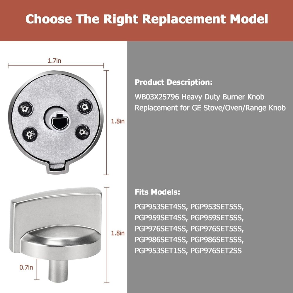 These knobs are a lifesaver! They fit perfectly on my GE stove, and installing them took seconds—just pop off the old ones and push these on. The grip is solid, no more slipping while cooking. Love that they come in a 5-pack, so I have spares. Super durable and exactly like the originals. Highly recommend!