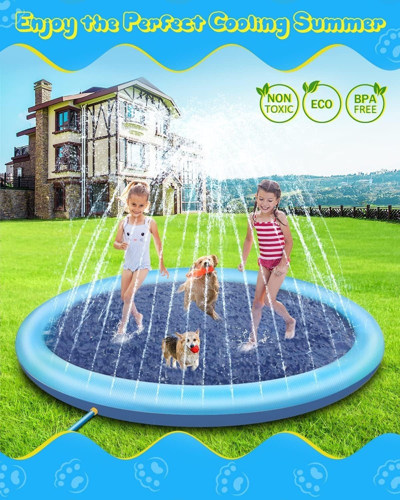 Blue 75in Dog Splash Pad - Perfect Anti-Slip Summer Fun for Pets & Kids