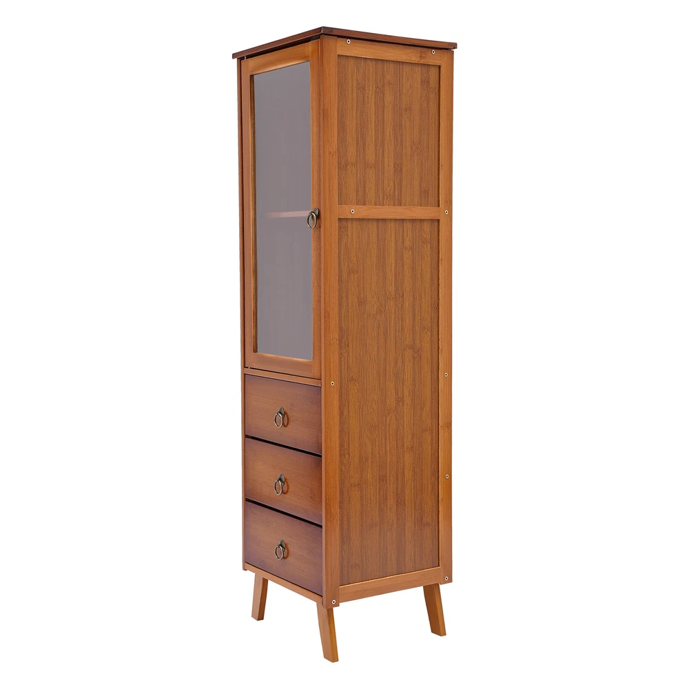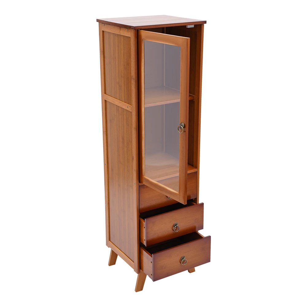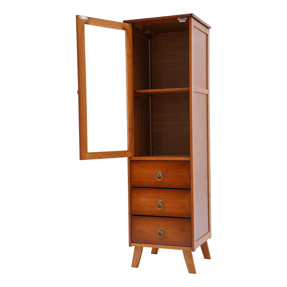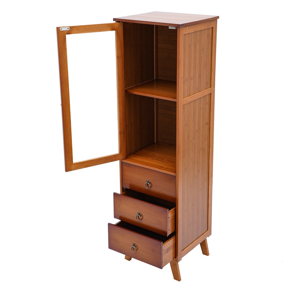 Description The afternoon sunshine, a book and a cup of tea are the meaning of life. With a single cabinet door and three-drawer design, this wood cabinet can organize your items in order and let you experience simple life. It can adapt to any home style, adding elegance to your room. The raised design of the four legs provides strong support for the product while also making it easier to clean. Key Features High-quality Material: The product made of high-quality bamboo, acrylic, and hardware has high wear resistance and strong pressure resistance, thus having a long service life. Multiple Layout: The double-tiered design and the closed space of three drawers can meet your various storage needs and provide you with ample storage space. Durable Bamboo Storage Cabinet with Drawers Freestanding Single-door Cupboard Description The afternoon sunshine, a book and a cup of tea are the meaning of life. With a single cabinet door and three-drawer design, this wood cabinet can organize your items in order and let you experience simple life. It can adapt to any home style, adding elegance to your room. The raised design of the four legs provides strong support for the product while also making it easier to clean. Key Features High-quality Material: The product made of high-quality bamboo, acrylic, and hardware has high wear resistance and strong pressure resistance, thus having a long service life. Multiple Layout: The double-tiered design and the closed space of three drawers can meet your various storage needs and provide you with ample storage space. High Stability: The sturdy structure of the rectangular body and the 4 legs at the bottom provide stability and durability to the product. Each tier can easily withstand 22.05 pounds of cargo under even force. Waterproof Surface: The eco-friendly varnished surface of the product is moisture resistant, making it ideal for storage in bathrooms and kitchens. Classic Appearance: The smooth rectangular cabinet has a classic brown color, making it an attractive choice for any home decoration from traditional to modern. Considerate Design: The design of acrylic doors and drawers can protect your products from light exposure, temperature, dirt and dust so that they can keep clean and tidy. Easy to Clean : The smooth surface and simple product structure make it easy to clean. You just need to wipe it with a wet rag Raised Foot Design: The raised support foot can effectively avoid moisture and make the center of gravity of the product more stable. The height of 3.9 inches can allow the sweeping robot to enter and exit freely so that the bottom space can be cleaned more thoroughly. Easy to Assemble: All necessary hardware and electronic manual in English (If you need it, please contact the customer service staff) can help you complete the installation quickly. Details Exquisite Accessories: The high-quality round design plus metal material add a metallic luster to the product and bring comfortable feel. Well-designed Door: The cabinet door with magnetic suction design is easy to close and can prevent items from falling out. In addition, the clear acrylic door can block dust and make interior items visible at a glance. Application The product can be used in the kitchen, bathroom, bedroom, and living room, and as a sideboard, storage cabinet, etc. Specification Color: Brown Assembly Required: Yes Material: Bamboo, Acrylic, Hardware Process: Spray Paint ( Environmental Varnish ) Mounting Type: Floor Mount Number of Tiers: 5 The Max. Load of Each Tier: About 10kg/22.05lbs (Under Uniform Force) Drawer Height: 12cm/4.7in Leg Height: 10cm/3.9in Cabinet Door Height: 58.5cm/23in Cabinet Door Inner Laminate Height: 29cm/11.4in Product Size: 32*29*110cm/ 12.6*11.4*43.3 in Package Included 1 * Cabinet 1 * Chinese Manual All Accessories for Installation Notes Bamboo products are from natural materials, inevitably there will be different textures, bamboo knots, bamboo halos, bamboo gaps, bamboo spots, and other phenomena, which will not affect the beauty and use. Please do not use corrosive cleaning agents or hard objects to clean, it is recommended to use a soft cloth to wipe. Bamboo products should not be placed in the sun for a long time to avoid cracking and deformation, and should not be placed in a dark and humid place for a long time to avoid mildew. Please keep accessories away from babies, children, and pets during installation. Please allow the slight color difference caused by the shooting light and the 1-3 cm error due to manual measurement, and make sure you do not mind before ordering. Payment Delivery details Terms of sales About us Contact us Payment We accept ebay payment 。 Fees such as import duties, taxes are not included in the item price or shipping costs. These charges are the buyer's responsibility. Delivery details Shipping: 2-9 working days to: USA Terms of sales We maintain high standards of excellence and strive for hundred percent customer satisfaction. Feedback is very important to us. We hope that you contact us immediately before you give neutral or negative feedback, so that we can address your concerns. It is impossible to address issues if we do not know about them! About us Your satis faction is our ultimate goal. We work hard to earn your trust and future business. Our certified technicians have tested each item before shipping. The unit comes with 1 year limited warranty on all manufacturing defects. a) If you receive a defective item, you may return it or ask for a discount. Please contact us within 14 days after you receive the package. b) What you returned must be intact and in its original packaging as re? u. Customer is responsible for shipping costs of the returned item. c) We will cover the cost of shipping back t with the shipping rate indicated in the registration page. We will send you a new unit or refund the full payment you paid. Thank you. Contact us Business Hour Business Hour: Monday To Friday: 8:30 AM to 5:00 PM (Beij