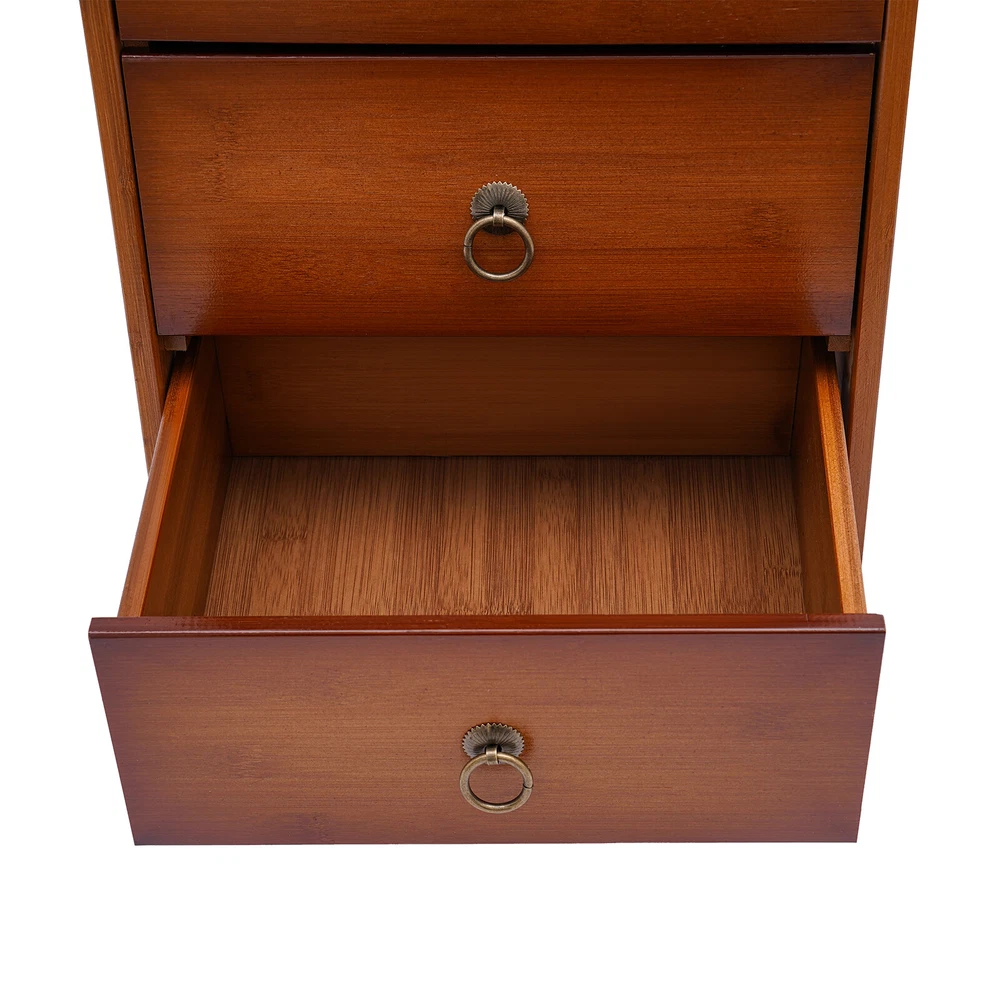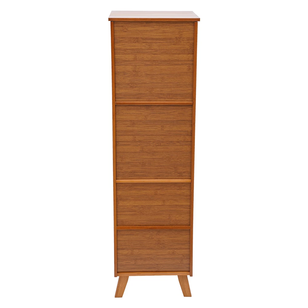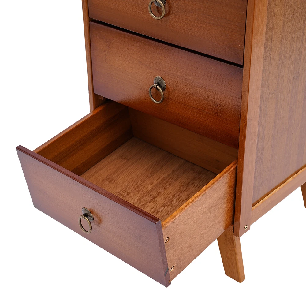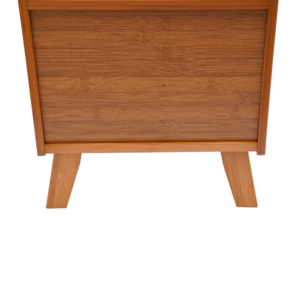 This bamboo storage cabinet is a game-changer for keeping my space tidy and stylish! The sturdy bamboo build feels premium, and the mix of drawers and a single door offers perfect organization. It blends seamlessly with my decor while adding a touch of natural elegance. The raised legs make cleaning a breeze, and the craftsmanship is solid—no wobbles! Ideal for storing books, linens, or tea supplies, it’s both functional and beautiful. Highly recommend for anyone wanting practical storage with a chic, minimalist vibe.