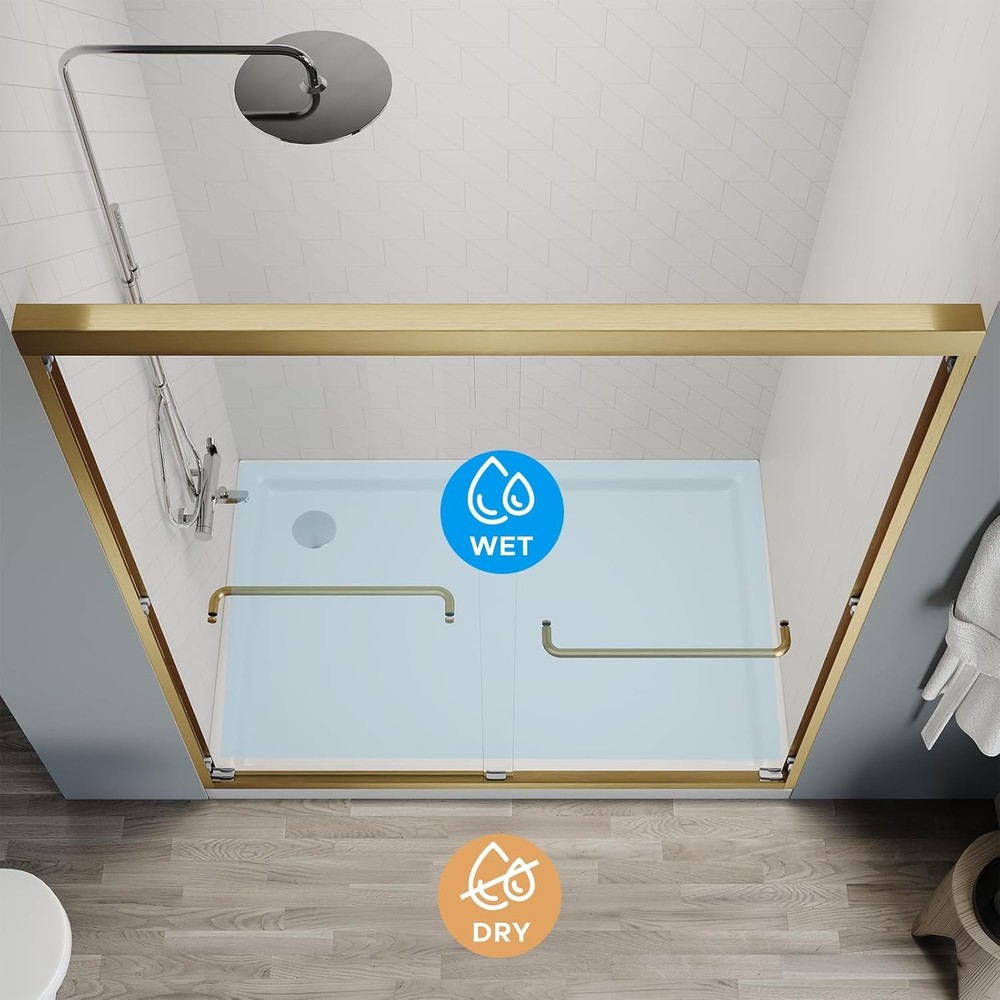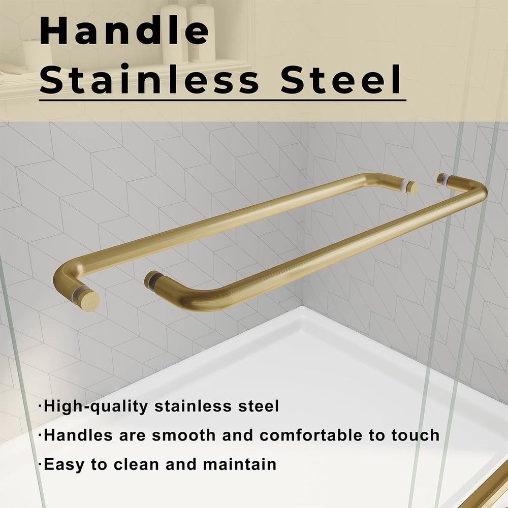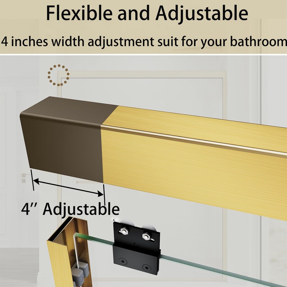 Product Dimension This brushed gold shower glass doors is 60'' wide and 72'' height. The width can be adjusted from 56 "to 60" by cutting the guide rail, providing customizable and flexible installation. Certified Tempered Sliding Door For Bathroom Made of 1/4-inch (6mm) thickened tempered glass, it has passed SGCC certification. Its impact resistance is five times that of ordinary glass. Double Sliding Design This brushed gold shower glass doors can be slide on the left side or on the right side base on your preference. Durability With an aluminum alloy frame structure and stainless steel handle, sliding shower door brushed gold-faced resistance ensures durability even in a humid environment. Easy installation Easy to install sliding door for bathroom. Please refer to the manual for installation instructions. Due to the heavy glass, the sliding shower door is recommended to be installed by two professional people. DOUBLE SLIDING GOLD SHOWER DOOR TEMPERED GLASS SHOWER DOOR ADVANCED DETAILS DESIGN As a professional bathroom product manufacturer, we always provide you with better products and more efficient services, but the following service terms need to be known to you: 1: If you find some problems with the product after receiving the goods, please do not discard the product, because we need you to provide pictures or videos of the relevant faults to better serve you. 2: Please note that we do not bear the installation/assembly costs. If you find a fault during the installation of the product, we will not bear or reimburse this cost because we stipulate that all parts must be checked before booking. 3: Delivery within the United States only, excluding Alaska/Hawaii, Puerto Rico, Guam, Saipan, APO/FPO, US Protectorates and PP Box. Usually the delivery time is 1 to 7 business days. If you still have not received the goods after 7 business days, please contact us immediately and we will track the order for you. 4: If your goods are damaged when delivered, you must refuse the order and describe the damage on the receipt. Just fill in "the goods are damaged". If you accept the goods and the damage is not noted on the receipt, we reserve the right not to refund or replace your goods. If you are not satisfied with your purchase, please contact us within 7 days. Please note that there is a 20% restocking fee and all shipping and handling charges are the responsibility of the buyer.