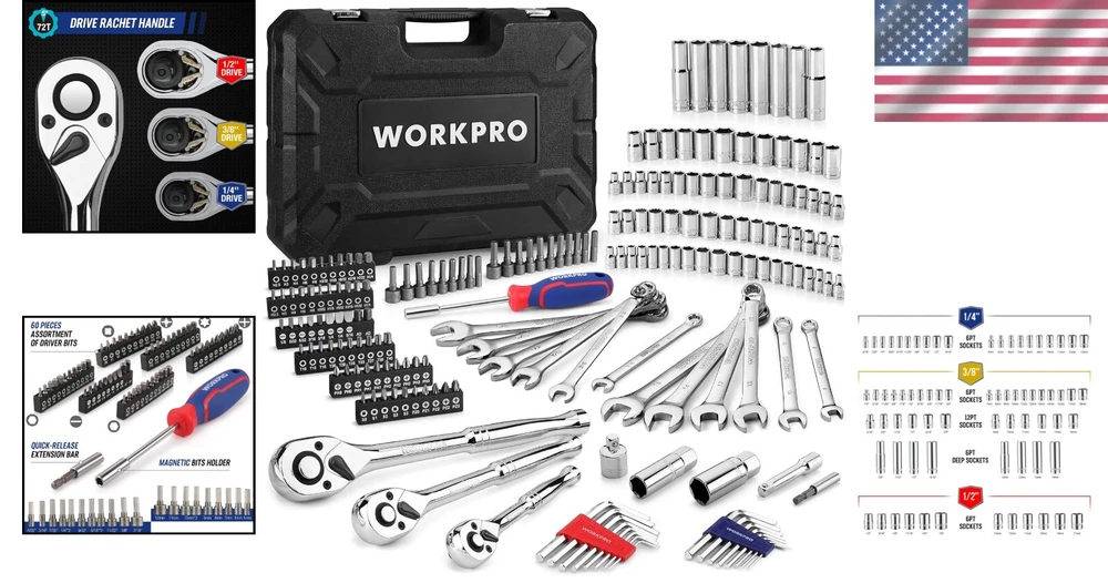 Durable Chrome Vanadium 192-Piece Tool Set - 1/2'', 1/4'', 3/8'' Drive Ratchets ‹ › ‹ › ‹ › ‹ › ‹ › ‹ › ‹ › ‹ › ‹ › Durable Chrome Vanadium 192-Piece Tool Set 1/2'', 1/4'', 3/8'' Drive Ratchets Complete Mechanic Tool Set: 192-piece set including: 3 drive ratchet handles 73 drive Metric & SAE sockets 3-inch extension bar 12 combination wrenches 16 Metric & SAE hex keys Magnetic bits holder 60 assorted driver bits Magnetic bits extension 20 nut driver bits 3 adapters 2 spark plug sockets Heavy-duty carrying case High Quality and Durability: Made from high-quality Chrome Vanadium forged body for exceptional strength. Full polished chrome finish sockets and wrenches provide anti-corrosion protection. All tools meet and exceed ANSI standards for precision operation. Efficient Socket & Ratchet Tool: Includes 1/4” – 3/8” – 1/2” ratchets with push-button quick release. 72-tooth ratchet with a 5-degree arc swing for enhanced maneuverability in tight spaces. Complete range of metric and SAE sized sockets for any automotive or home fastener needs. Wide Application: This mechanic socket tool set includes essential tools for professional use and auto repair. Perfect for repairmen, construction workers, mechanics, and DIY enthusiasts. Great for home, garage, and workshop applications. Easy Storage: Customized heavy-duty case for portability and neat organization. Designated slots keep every piece in place, preventing loss or misplacement. Size marks beside each slot for quick identification during use. Why Choose This Set? Invest in the ultimate mechanic tool set that combines exceptional quality, durability, and organized portability. With a comprehensive selection of 192 pieces, including ratchets, sockets, and wrenches, this set caters to every repair and project need, both at home and professionally. Say goodbye to clutter and confusion in your toolkit; opt for a toolset that is meticulously designed to enhance efficiency and precision. Elevate your toolkit and ensure you're equipped for every task—add the Durable Chrome Vanadium 192-Piece Tool Set to your collection today! Shipping Free & Fast Shipping - We offer free shipping to most of the USA with a normal delivery time of 3-10 businessdays. However, due to various situations, additional delivery time (up to 3 weeks) may be required for some items. Alternative Carriers - We may use alternative carriers (e.g. USPS, FedEx, UPS, etc.) to ensure your package arrives safely and on time. Due to the use of multiple carriers, we are unable to provide a tracking number automatically. Handling Time - Orders are processed and shipped within 1-5 business days of receiving cleared payment. Shipping Restrictions - Shipping to Alaska, Hawaii, Puerto Rico, Guam, and other US territories may incur shipping charges or delivery restrictions. Please contact us before ordering, or your order can be refunded/cancelled. State Restrictions - There may be restrictions based on your state of purchase. For example, certain items may not be shipped to California due to state regulations. Contact for Tracking Updates - If you require tracking updates or have any concerns about the delivery of your order, please feel free to contact us, and we will be happy to assist you. Return Please see our ebay return policy. We do not accept return on most products. This is to avoid customers mis-using ebay returns. All sales are final. Please be sure to check the return policy listed at the top of the listing. In rare cases, we may accept returns, if the buyer pays both ways shipping and 20% restocking fee. If you are un-sure of return policy of a particular item, please ask before buying. Payment We accept all major credit cards, PayPal, and Apple Pay for your convenience. Your payment information is secure and encrypted to ensure a safe and seamless transaction. Please complete your payment within 3 days of purchase to avoid any delays in shipping. Feedback Your feedback is extremely important to us. We strive to provide the best products and customer service possible. If you are satisfied with your purchase, please take a moment to leave us a positive review. If you have any concerns or issues with your order, please contact us before leaving negative feedback. We are committed to resolving any problems and ensuring your satisfaction. Contact Us If you have any questions or concerns, please feel free to reach out to our customer support team. You can contact us through the eBay messaging system. We are available Monday to Friday, 9:00 am to 5:00 pm EST, and we will do our best to respond to your inquiry within 24 hours. Buy it now and enjoy a pleasant shopping experience! UPC: Not Set Model: Not Set Item Width: Not Set Item Length: Not Set Item Height: Not Set Item Diameter: 14.17 x 4.33 x 17.32 inches Item Weight: 17 pounds Unit Quantity: 1 Tools Included: Ratchet,drive ratchet handle,drive Metric&SAE sockets,extension bar,combination wrenches,Metric&SAE hex keys,magnetic bits holder,driver bits assortment,magnetic bits extension,nut driver bits,adapters,spark plug sockets,carrying case System of Measurement: Both,Metric,Standard (SAE) Brand: Unbranded Type: Mechanics Tool Set Number of Pieces: 192 Case Type: Hard Color: Silver MPN: Not Set Finish: Polished Country/Region of Manufacture: Not Set Manufacturer Warranty: Not Set Unit Type: lb Case Included: Not Set Personalize: Not Set