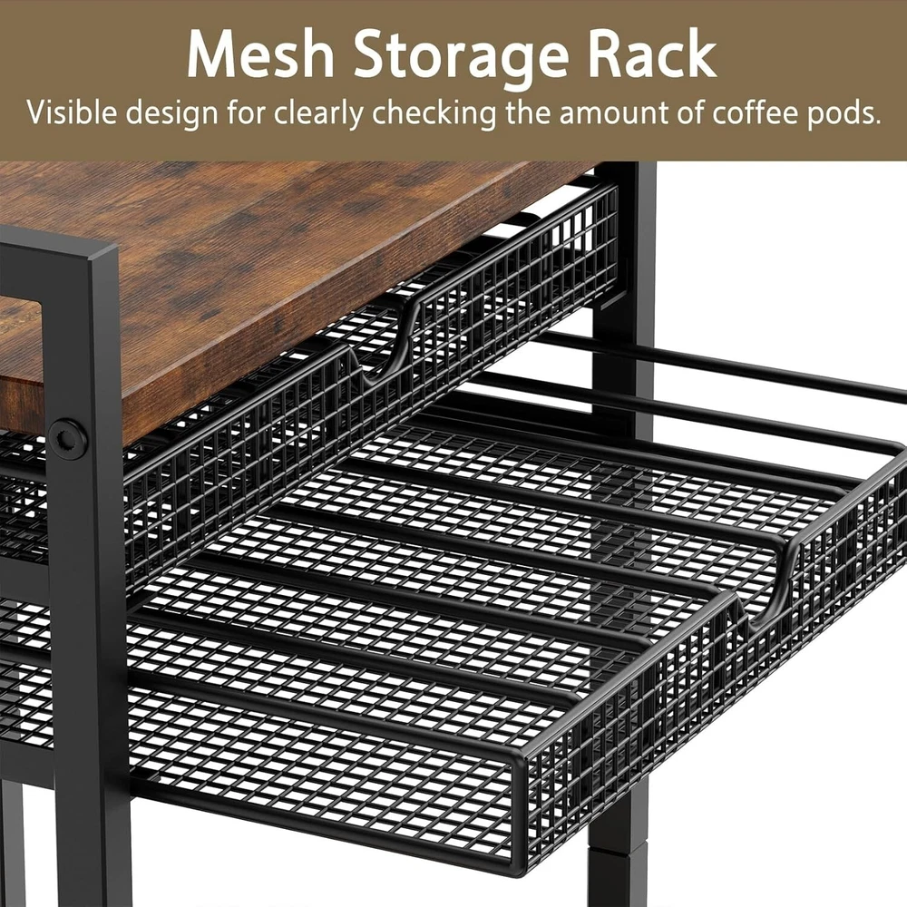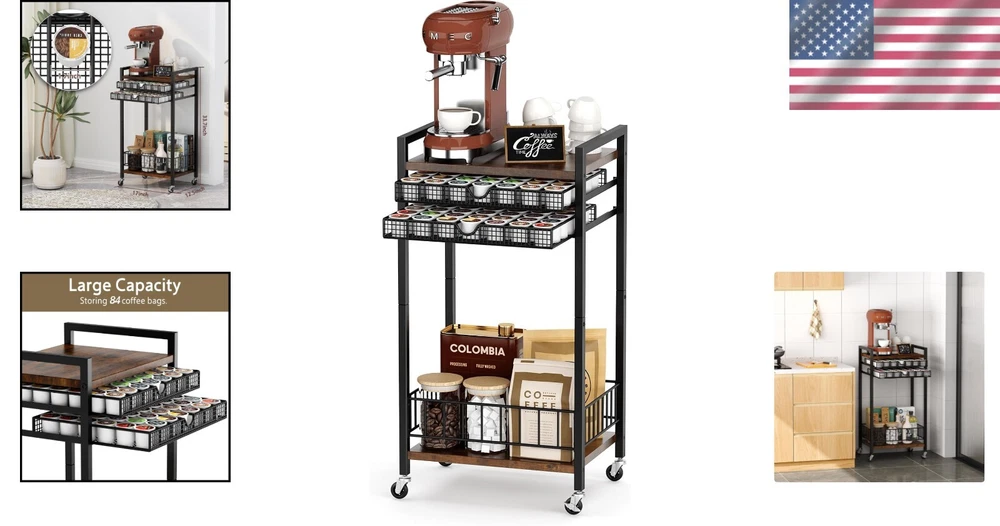 Durable Coffee Bar Organizer Cart in Rustic Brown – 84 K-Cups Storage Solution