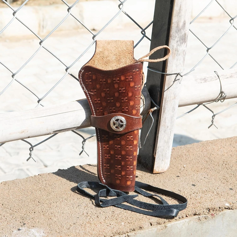 Durable Cowboy Leather Holster with Tie Down Strap for Easy Draw and Comfort