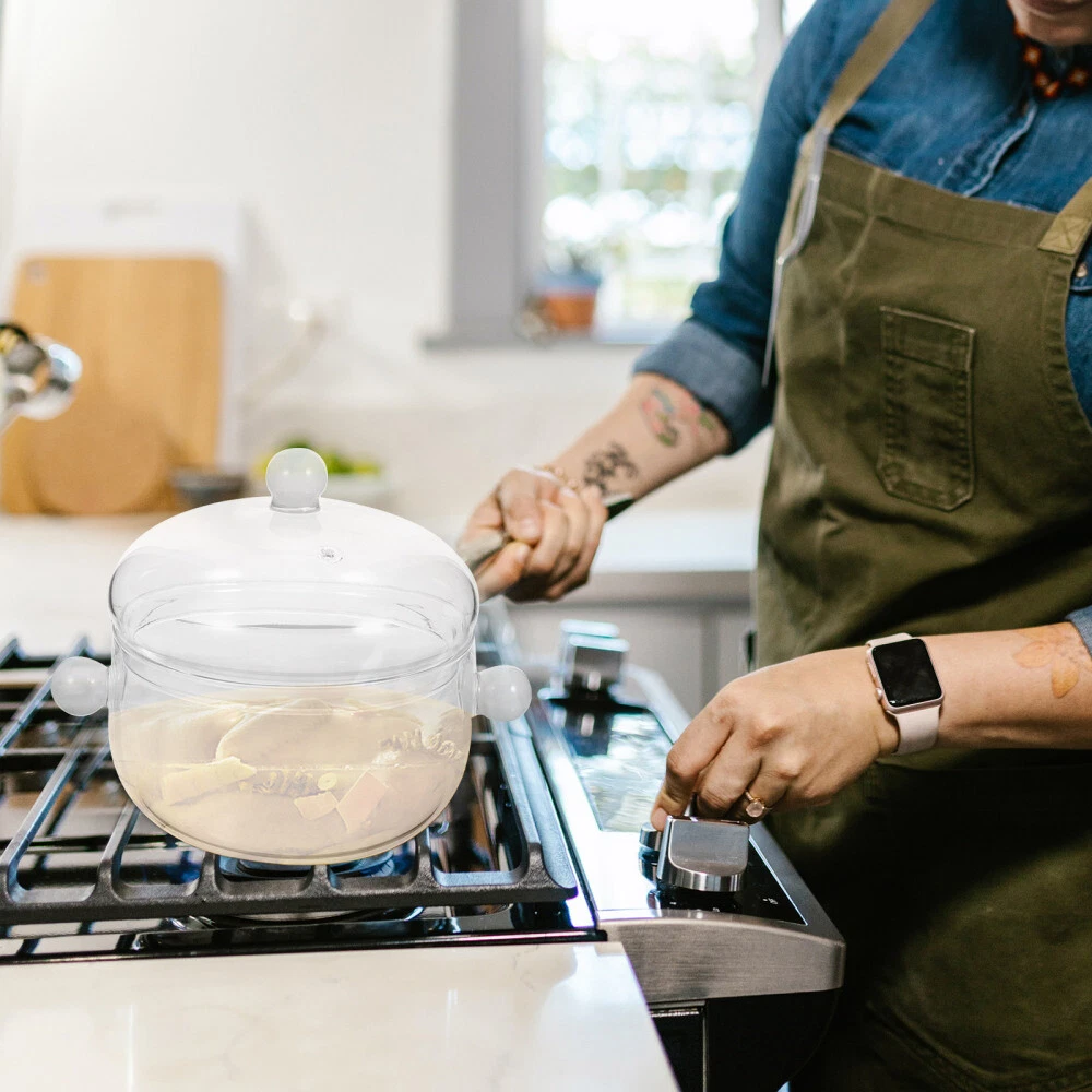 Durable Glass Soup Stockpot with Handle for Stews, Sauces, and Noodles