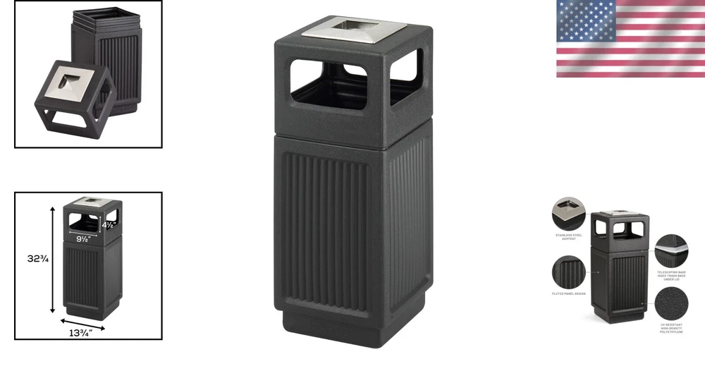Durable Indoor/Outdoor 30-Gallon Trash Can with Built-In Ash Urn - Black ‹ › ‹ › ‹ › ‹ › ‹ › ‹ › ‹ › ‹ › ‹ › Durable Indoor/Outdoor 30-Gallon Trash Can with Built-In Ash Urn - Black Introducing a waste solution that perfectly balances functionality and aesthetics, the Canmeleon Recessed Panel Trash Can with Built-In Ash Urn is designed to keep your spaces clean while enhancing their visual appeal. Key Features: Elegant Design: Enjoy a stylish blend of decorative fluted panels and a sleek stainless steel ashtray, designed to seamlessly integrate into both indoor and outdoor environments. All-Weather Durability: Crafted from high-density polyethylene with integrated UV inhibitors, this receptacle maintains its integrity against harsh conditions. Hands-Free Disposal: The innovative covered dome with four generously sized openings allows for effortless waste disposal, reducing germ transfer. Stable and Secure: For added safety, the unit can be fastened to the pavement or weighted down, ensuring resistance to weather and vandalism. Ideal Dimensions: Finished dimensions of 13.75"W x 13.75"D x 32.75"H and a weight of 10 lbs make this receptacle unobtrusive yet highly functional, boasting a capacity of 15 gallons. Why Choose This Trash Can? Choosing the Canmeleon Trash Can means investing in a cleaner, more organized environment. Its thoughtful construction is designed for ease of maintenance while providing a sophisticated appearance that complements any space. Whether in a busy lobby, a serene garden, or a bustling outdoor festival, it’s the perfect companion for effective waste management. Elevate your cleaning standards and improve your first impressions. Opt for the unparalleled fusion of durability and elegance that our trash receptacle with ash urn has to offer - a practical addition to your public or private spaces. Shipping Free & Fast Shipping - We offer free shipping to most of the USA with a normal delivery time of 3-7 days. However, due to the current situation, additional delivery time (up to 3 weeks) may be required for some items. Alternative Carriers - We may use alternative carriers (e.g. USPS, FedEx, UPS, etc.) to ensure your package arrives safely and on time. Due to the use of multiple carriers, we are unable to provide a tracking number automatically. Handling Time - Orders are processed and shipped within 1-2 business days of receiving cleared payment. Shipping Restrictions - Shipping to Alaska, Hawaii, Puerto Rico, Guam, and other US territories may incur shipping charges or delivery restrictions. Please contact us before ordering, or your order can be refunded/cancelled. State Restrictions - There may be restrictions based on your state of purchase. For example, certain items may not be shipped to California due to state regulations. Contact for Tracking Updates - If you require tracking updates or have any concerns about the delivery of your order, please feel free to contact us, and we will be happy to assist you. Return 30-Day Hassle-Free Returns - We want you to be completely satisfied with your purchase. If you are not, you can return the item within 30 days of receiving it for a full refund or exchange. Easy Return Process - To start a return, simply contact us and we will provide you with a prepaid return shipping label and detailed instructions. Restocking Fee - There are no restocking fees for returns. However, the buyer is responsible for return shipping costs if the return is not due to a seller's error. Refund Processing Time - Refunds will be processed within 5 business days of receiving the returned item in its original condition. Payment We accept all major credit cards, PayPal, and Apple Pay for your convenience. Your payment information is secure and encrypted to ensure a safe and seamless transaction. Please complete your payment within 3 days of purchase to avoid any delays in shipping. Feedback Your feedback is extremely important to us. We strive to provide the best products and customer service possible. If you are satisfied with your purchase, please take a moment to leave us a positive review. If you have any concerns or issues with your order, please contact us before leaving negative feedback. We are committed to resolving any problems and ensuring your satisfaction. Contact Us If you have any questions or concerns, please feel free to reach out to our customer support team. You can contact us through the eBay messaging system. We are available Monday to Friday, 9:00 am to 5:00 pm EST, and we will do our best to respond to your inquiry within 24 hours. Thank you for supporting our small family business! UPC: Not Set Unit Quantity: 30 Room: Outdoor,Indoor Material: Plastic,Polyethylene,High-density polyethylene Features: Weather Resistant,Durable,Hands-free Disposal,Telescoping Base,Recessed Base,Covered Dome,Ash Urn Suitable For: Indoor,Outdoor Brand: Unbranded Item Height: Commercial Trash Can Item Length: Commercial Trash Can Item Width: Commercial Trash Can Type: Trash Can Color: Black Capacity: 30 gal Size: Large Number of Compartments: 1 Item Weight: 10 lb Model: Not Set MPN: Not Set Shape: Square Style: Modern Pattern: Not Set Country/Region of Manufacture: Not Set Finish: Matte Unit Type: gal Personalize: Not Set