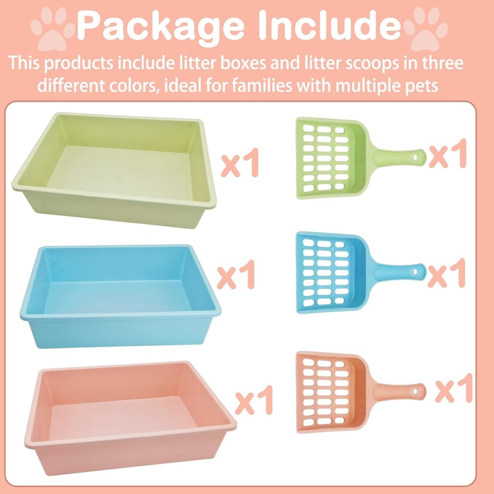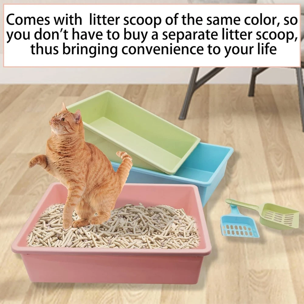 Kathson 3PCS Medium Open Cat Litter Box with Scoop, Durable Non-Stick Product Details Item Weight: 1.5 pounds Manufacturer: kathson Item Package Dimensions L x W x H: 15.2 x 11.69 x 5.43 inches Item Dimensions LxWxH: 1 x 1 x 1 inches Item Weight: 1.5 Pounds Brand Name: kathson Target Audience Keyword: house-cats Size: Medium Material: Plastic Style: Durable Product Dimensions : 1 x 1 x 1 inches; 1.5 Pounds Manufacturer : kathson Brand: kathson Product Dimensions: 1"L x 1"W x 1"H Litter Box Type: Pan Litter Box [Open Design] This low entry cat litter box is open design to increase air circulation and remove unpleasant odors. Compared to lift-the-lid litter boxes, this kitty litter tray not only makes it easier for cat owners to clean up their cat's feces at any time, but it also reduces the cat's fear of the dark, which is very beneficial to the cat's health [High Quality Material] Our portable litter box is made of high quality PP material, which is safe, odorless, strong and durable, and it is easy to clean and suitable for long-term use. You can give your cat this pretty litter box as a gift to provide a comfortable living environment for him [Multipurpose] In addition to being a cat litter box, it can also be used as a pet bath box. And plastic cat litter tray also is very lightweight and is not only suitable for indoor pet places such as homes and pet stores, but also perfect to take with you when you take your cat on a trip or picnic [Safe Design] Our open litter box can provide full security for you and your cat.The four corners of the kitten litter pan is round and have no sharp edges, so you can easily pick it up. This design is also safe for cats, preventing them from accidentally touching the corners of the litter box and getting injured