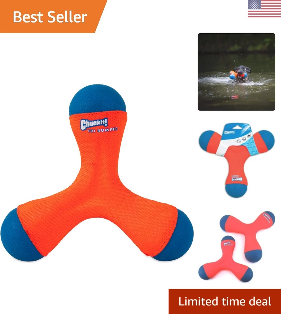 Durable Outdoor Dog Toy - Chuck it! Tri-Bumper for Fetch Games and Training ‹ › ‹ › ‹ › ‹ › ‹ › ‹ › ‹ › ‹ › ‹ › ‹ › ‹ › ‹ › Durable Outdoor Dog Toy - Tri-Bumper -Chuck it! Tri-Bumper for Fetch Games and Training Features: Tumbling design with bouncy rubber end-caps for exciting games of fetch Floating dog toy made of lightweight EVA foam, perfect for water play High-visibility colors in bright orange and blue for easy spotting during outdoor play Durable multilayer foam and polyester construction for long-lasting use outdoors Contoured design for easy pickup and quick retrieval Benefits: Exciting and engaging play for your dog Perfect for water play and pool activities Easy to spot and retrieve during outdoor play Durable construction for long-lasting use Convenient design for pet parents for quick and easy playtime Why choose our Tri-Bumper Dog Toy? Looking for a durable and engaging outdoor toy for your furry friend? Our Tri-Bumper Dog Toy is the perfect choice! With its tumbling design and bouncy rubber end-caps, this toy adds excitement to games of fetch. The lightweight EVA foam construction makes it perfect for water play, while the high-visibility colors make it easy to spot during outdoor activities. Plus, the durable construction ensures long-lasting use, and the contoured design allows for quick and easy retrieval. Don't settle for ordinary dog toys - choose our Tri-Bumper for endless fun and playtime with your pup! Order your Tri-Bumper Dog Toy today and make fetch games and training sessions more exciting for your furry companion! Shipping Free & Fast Shipping - We offer free shipping to most of the USA with a normal delivery time of 3-7 days. However, due to the current situation, additional delivery time (up to 3 weeks) may be required for some items. Alternative Carriers - We may use alternative carriers (e.g. USPS, FedEx, UPS, etc.) to ensure your package arrives safely and on time. Due to the use of multiple carriers, we are unable to provide a tracking number automatically. Handling Time - Orders are processed and shipped within 1-2 business days of receiving cleared payment. Shipping Restrictions - Shipping to Alaska, Hawaii, Puerto Rico, Guam, and other US territories may incur shipping charges or delivery restrictions. Please contact us before ordering, or your order can be refunded/cancelled. State Restrictions - There may be restrictions based on your state of purchase. For example, certain items may not be shipped to California due to state regulations. Contact for Tracking Updates - If you require tracking updates or have any concerns about the delivery of your order, please feel free to contact us, and we will be happy to assist you. Return 30-Day Hassle-Free Returns - We want you to be completely satisfied with your purchase. If you are not, you can return the item within 30 days of receiving it for a full refund or exchange. Easy Return Process - To start a return, simply contact us and we will provide you with a prepaid return shipping label and detailed instructions. Restocking Fee - There are no restocking fees for returns. However, the buyer is responsible for return shipping costs if the return is not due to a seller's error. Refund Processing Time - Refunds will be processed within 5 business days of receiving the returned item in its original condition. Payment We accept all major credit cards, PayPal, and Apple Pay for your convenience. Your payment information is secure and encrypted to ensure a safe and seamless transaction. Please complete your payment within 3 days of purchase to avoid any delays in shipping. Feedback Your feedback is extremely important to us. We strive to provide the best products and customer service possible. If you are satisfied with your purchase, please take a moment to leave us a positive review. If you have any concerns or issues with your order, please contact us before leaving negative feedback. We are committed to resolving any problems and ensuring your satisfaction. Contact Us If you have any questions or concerns, please feel free to reach out to our customer support team. You can contact us through the eBay messaging system. We are available Monday to Friday, 9:00 am to 5:00 pm EST, and we will do our best to respond to your inquiry within 24 hours. Thank you for supporting our small family business!