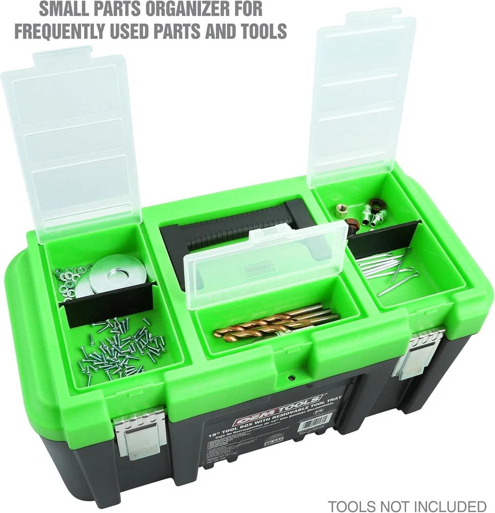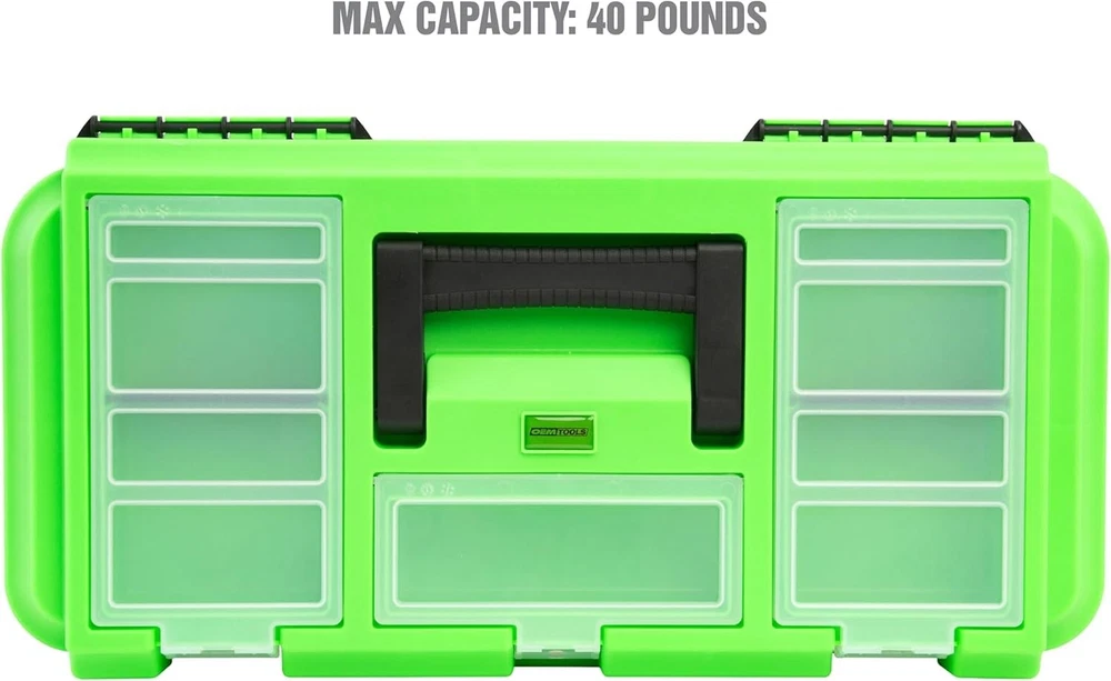 Durable Plastic Tool Box with Handle, 5 Compartment Organizer - 40 lb Capacity