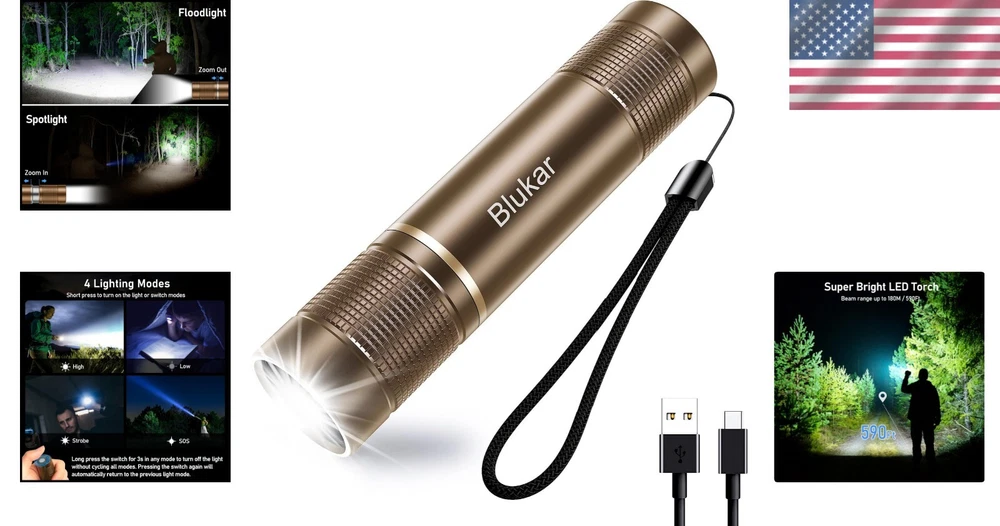 Durable Rechargeable Flashlight with Zoom - Ideal for Hiking & Emergencies