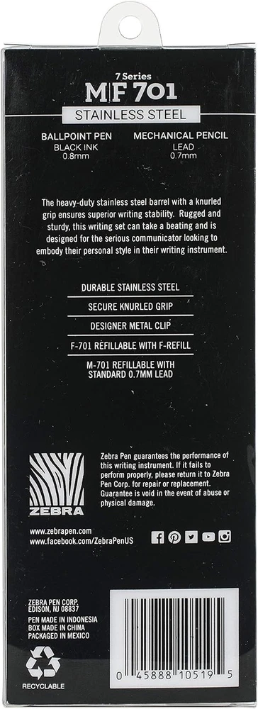 Durable Stainless Steel Mechanical Pencil & Ballpoint Pen - Ergonomic & Stylish ‹ › ‹ › ‹ › ‹ › ‹ › ‹ › ‹ › Durable Stainless Steel Mechanical Pencil & Ballpoint Pen Set Elevate your writing experience with this ergonomic and stylish writing instrument set, perfect for the serious communicator who values both functionality and aesthetics. Features: 0.8mm fine point, black easy-glide ink pen for smooth writing. 0.7mm fine point durable lead mechanical pencil for precision. Constructed from professional grade stainless steel to prevent corrosion. Knurled metal grip for superior control and writing stability. Elegant designer metal clip to securely attach to your shirt pocket. F-701 Ballpoint Retractable Pen is refillable with Zebra's F-Refill. M-701 Mechanical Pencil is refillable with Zebra's Standard 0.7mm HB Lead Refill (99911) and Eraser Refills (83211). Benefits: Rugged and sturdy for a long-lasting writing experience. Ergonomic design fits comfortably in your hand. Revolutionary easy-glide ink ensures a smooth writing flow. Refillable options make for sustainable and economical use. Perfect as a thoughtful gift for executives, students, or personal use. Why choose our Stainless Steel Writing Set? This exquisite set of mechanical pencil and ballpoint pen is not just about writing; it's about making a statement. Designed for those who appreciate quality, durability, and elegance, these instruments are the epitome of style for the modern professional. Whether at your desk, in a meeting, or at an event, this set ensures you project confidence and sophistication with every stroke. Indulge in the luxurious experience of premium writing—order your Durable Stainless Steel Mechanical Pencil & Ballpoint Pen Set today! Shipping Free & Fast Shipping - We offer free shipping to most of the USA with a normal delivery time of 3-7 days. However, due to the current situation, additional delivery time (up to 3 weeks) may be required for some items. Alternative Carriers - We may use alternative carriers (e.g. USPS, FedEx, UPS, etc.) to ensure your package arrives safely and on time. Due to the use of multiple carriers, we are unable to provide a tracking number automatically. Handling Time - Orders are processed and shipped within 1-2 business days of receiving cleared payment. Shipping Restrictions - Shipping to Alaska, Hawaii, Puerto Rico, Guam, and other US territories may incur shipping charges or delivery restrictions. Please contact us before ordering, or your order can be refunded/cancelled. State Restrictions - There may be restrictions based on your state of purchase. For example, certain items may not be shipped to California due to state regulations. Contact for Tracking Updates - If you require tracking updates or have any concerns about the delivery of your order, please feel free to contact us, and we will be happy to assist you. Return 30-Day Hassle-Free Returns - We want you to be completely satisfied with your purchase. If you are not, you can return the item within 30 days of receiving it for a full refund or exchange. Easy Return Process - To start a return, simply contact us and we will provide you with a prepaid return shipping label and detailed instructions. Restocking Fee - There are no restocking fees for returns. However, the buyer is responsible for return shipping costs if the return is not due to a seller's error. Refund Processing Time - Refunds will be processed within 5 business days of receiving the returned item in its original condition. Payment We accept all major credit cards, PayPal, and Apple Pay for your convenience. Your payment information is secure and encrypted to ensure a safe and seamless transaction. Please complete your payment within 3 days of purchase to avoid any delays in shipping. Feedback Your feedback is extremely important to us. We strive to provide the best products and customer service possible. If you are satisfied with your purchase, please take a moment to leave us a positive review. If you have any concerns or issues with your order, please contact us before leaving negative feedback. We are committed to resolving any problems and ensuring your satisfaction. Contact Us If you have any questions or concerns, please feel free to reach out to our customer support team. You can contact us through the eBay messaging system. We are available Monday to Friday, 9:00 am to 5:00 pm EST, and we will do our best to respond to your inquiry within 24 hours. Thank you for supporting our small family business! Brand: Unbranded Material: Stainless Steel Vintage: Mechanical Pencil and Ballpoint Pen Set Country/Region of Manufacture: Mechanical Pencil and Ballpoint Pen Set