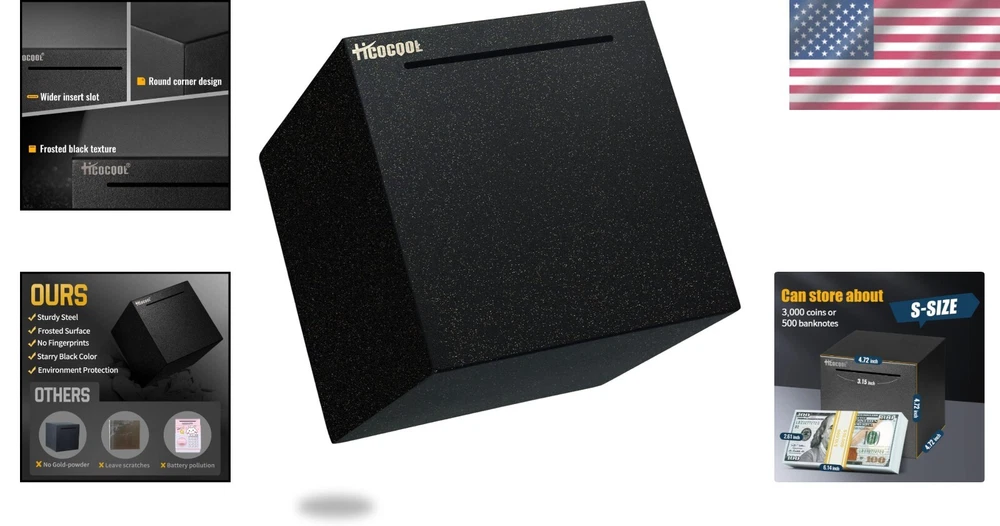 Durable Starry Black Savings Bank - Perfect for Coins and Bills, Ideal Gift ‹ › ‹ › ‹ › ‹ › ‹ › ‹ › ‹ › ‹ › ‹ › ‹ › ‹ › ‹ › Durable Starry Black Savings Bank Perfect for Coins and Bills, Ideal Gift Unique Starry Black Design Crafted with an electrostatic spraying process, offering a sophisticated frosted black finish with shimmering gold foil powder. Unlike typical stainless steel banks, our piggy bank resists light reflection and disguises fingerprints, exhibiting a stunning starry black hue when illuminated. The perfect novelty money bank, standing out as your first choice in 2025. Your Little Helper for Big Saving Projects Measuring 4.72 inches, made from high-quality, anti-corrosive stainless steel for ultimate durability. Sturdy enough to securely hold approximately 3000 coins or 500 bills at its full capacity. Saving for a Rainy Day This ONLY IN NO OUT design features 6 sealed sides and a single slot for deposits. Requires tools like a hammer or handsaw to open - a reminder that with this piggy bank, opening equals destruction. Encourages long-term saving plans - open only when your financial goal has been met or in emergencies. Educational Gift for All Ages Ideal for adults and a personal savings bank for children and teens, helping to instill saving habits and self-discipline. Perfect for gifting on holidays, birthdays, or special occasions, encouraging loved ones to fulfill their financial dreams. Value Service Included with your purchase are 4 round anti-slip mats, designed to stabilize your savings bank, reducing shaking and noise. Backed by our commitment to exceptional customer service and a Lifetime Warranty for peace of mind. Elevate your saving experience with this unique, stylish savings bank. Order your Durable Starry Black Savings Bank today and start your financial journey with elegance! Shipping Free & Fast Shipping - We offer free shipping to most of the USA with a normal delivery time of 3-7 days. However, due to the current situation, additional delivery time (up to 3 weeks) may be required for some items. Alternative Carriers - We may use alternative carriers (e.g. USPS, FedEx, UPS, etc.) to ensure your package arrives safely and on time. Due to the use of multiple carriers, we are unable to provide a tracking number automatically. Handling Time - Orders are processed and shipped within 1-2 business days of receiving cleared payment. Shipping Restrictions - Shipping to Alaska, Hawaii, Puerto Rico, Guam, and other US territories may incur shipping charges or delivery restrictions. Please contact us before ordering, or your order can be refunded/cancelled. State Restrictions - There may be restrictions based on your state of purchase. For example, certain items may not be shipped to California due to state regulations. Contact for Tracking Updates - If you require tracking updates or have any concerns about the delivery of your order, please feel free to contact us, and we will be happy to assist you. Return 30-Day Hassle-Free Returns - We want you to be completely satisfied with your purchase. If you are not, you can return the item within 30 days of receiving it for a full refund or exchange. Easy Return Process - To start a return, simply contact us and we will provide you with a prepaid return shipping label and detailed instructions. Restocking Fee - There are no restocking fees for returns. However, the buyer is responsible for return shipping costs if the return is not due to a seller's error. Refund Processing Time - Refunds will be processed within 5 business days of receiving the returned item in its original condition. Payment We accept all major credit cards, PayPal, and Apple Pay for your convenience. Your payment information is secure and encrypted to ensure a safe and seamless transaction. Please complete your payment within 3 days of purchase to avoid any delays in shipping. Feedback Your feedback is extremely important to us. We strive to provide the best products and customer service possible. If you are satisfied with your purchase, please take a moment to leave us a positive review. If you have any concerns or issues with your order, please contact us before leaving negative feedback. We are committed to resolving any problems and ensuring your satisfaction. Contact Us If you have any questions or concerns, please feel free to reach out to our customer support team. You can contact us through the eBay messaging system. We are available Monday to Friday, 9:00 am to 5:00 pm EST, and we will do our best to respond to your inquiry within 24 hours. Buy it now and enjoy a pleasant shopping experience! Material: Stainless Steel Brand: Unbranded Country/Region of Manufacture: Piggy Bank for Adults Original/Reproduction: Piggy Bank for Adults