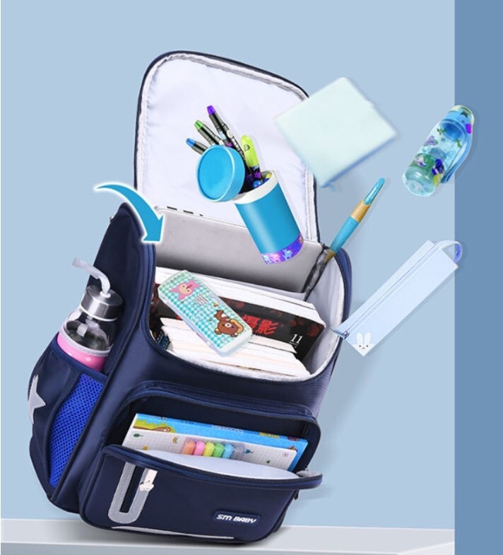 Closure:ZipColor:Navy Blue And Sky BlueVintage:NoBrand:Back to SchoolHandle/Strap Material:PolyesterOccasion:CasualAccents:ZipperBag Width:11 inBag Height:14 inPattern:Multiple ColorStyle:BackpackCountry/Region of Manufacture:ChinaDepartment:BoysCharacter:Boy, BearBag Depth:6 inMaterial:PolyesterSize:MediumTheme:School