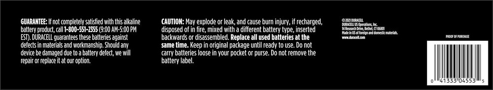 Duracell D, Pack of 12 Key Feature DEPENDABLE POWER: Duracell Coppertop D alkaline batteries are made to power everyday devices throughout the home, like toys, baby devices, home and kitchen accessories, flashlights, medical devices, clocks, and more. GUARANTEED FOR 12 YEARS IN STORAGE: Duracell guarantees each Coppertop D battery to last 12 years in storage, so you can be confident these batteries will be ready when you need them. # 1 TRUSTED BATTERY BRAND: From storm prep to holiday needs, Duracell is the # 1 trusted battery brand. QUALITY ASSURANCE: With Duracell batteries, quality is assured; every Duracell product is guaranteed against defects in material and workmanship. AVALIBLE SIZES: Duracell Coppertop alkaline batteries are available in C batteries, D batteries and 9V batteries sizes. AA & AAA batteries are also available with PowerBoost ingredients. Please contact us for further questions or inquiries: Monday - Friday 9:00 AM - 4:00 PM Happy Shopping!"
