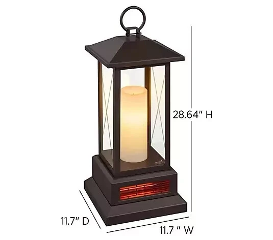 Duraflame 28" Electric Infrared Etched Color Changing Lantern Emerald 5,200 BTUs Are you the holdout when it's time to turn up the heat? We get it. And so does Duraflame. With this seasonless Electric Lantern Heater, you don't have to add extra heat to the whole house -- only the space where you need it most. Designed to discretely add supplemental infrared heat to any room, this space heater sits quietly beneath the real star of the show -- a beautiful, statuesque flameless candle that also warms the room with its inviting and relaxing ambience. No one trick pony here. This impressive LED candle, housed in clear glass panels (two with etched designs!) is a color-morphing chameleon, offering a choice of hues to match your mood, room makeover, or a medley of holidays (sports teams, too). Enjoy its extra warmth and welcomed illumination in the family room for movie night, a chilly guest bedroom, an empty nook, or drafty basement. What's more, you don't have to desert this lantern heater when the weather gets warmer 'cause it operates with or without heat for a year-round glow up. From Duraflame. Includes electric lantern heater and remote control with CR2025 battery Glass panels, two with etched mullions Flameless LED candle Three brightness settings Flicker or steady on options Infrared heat Heat settings: 1,000W Low; 1,500W High 5,200 BTUs Increases temperature in a 1,000 sq ft room up to six degrees 100% of the starting relative humidity in a 1,000 sq ft room remains after 24 hours The average cost to run the unit is $0.25/hour; this is only an average and will vary depending on your location Operates with or without heat For indoor use only Approximate measurements: Lantern 28.6"H x 11.7"W x 11.7"D, weighs 18.5 lbs; Cord 76"L UL listed Imported Note -We do not ship to warehouse addresses -We do not ship to island addresses -We do not ship to Po Box addresse